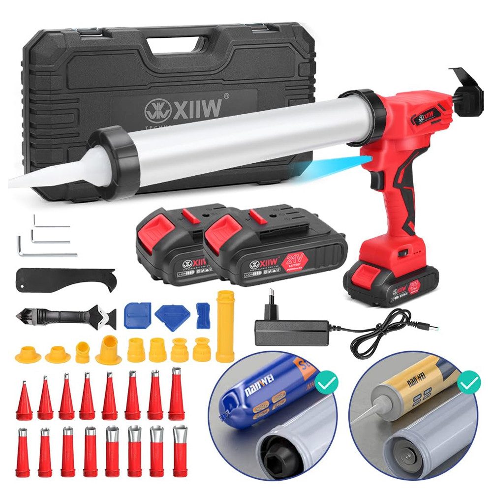 Lieferumfang | 1 * Kartuschenpistole( ohen Akku) ; 1 * Aufbewahrungskiste 2 * 2000mAh Lithium-Ionen-Akku und 1 * Batterieladegerät 25 *Dichtungsdüse & Ersatzbasis 8 * Silikonentferner Werkzeug |