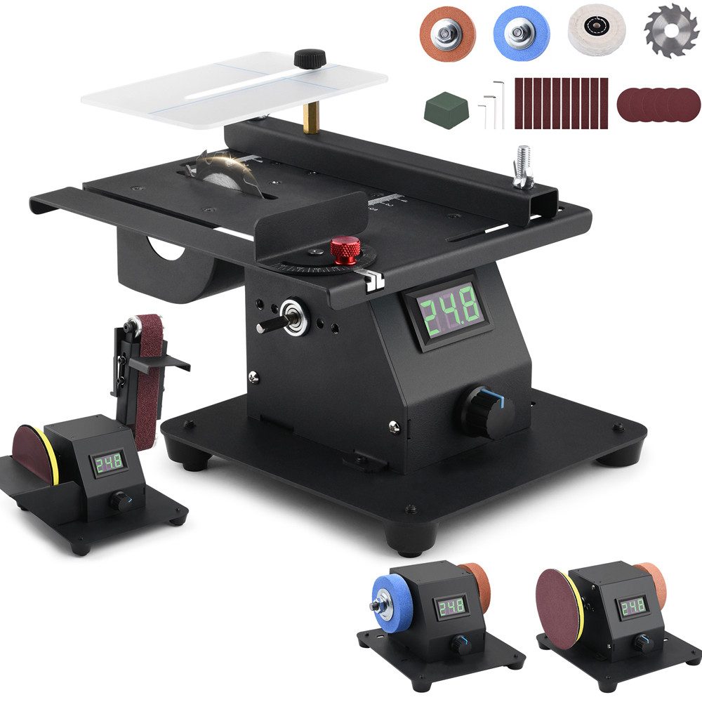 Ausgestattet mit einem Tischsägen-Kit, einem Gürtelschleifer-Kit, einem Doppelschleifscheiben-Kit und einem Polierrad-Kit sowie einem Schärfwachs zum Polieren harter Materialien. Das linksseitige Stoffpolierrad kann schnell installiert werden und ist sehr effektiv beim Reinigen und Polieren von Schmuckharz und Metallmaterialien.