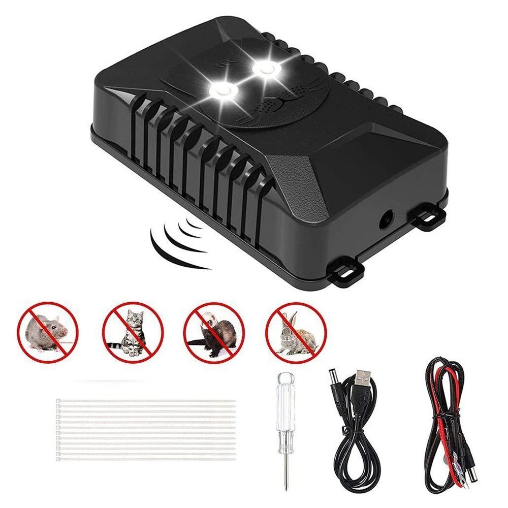 Lieferumfang | 1 x Ultraschall Marderschreck Auto 1 x USB-Kabel 1 x Gleichstromleitung 4 x Kabelbinder 1 x Kreuzschlitzschraubendreher 1 x Anleitung |
