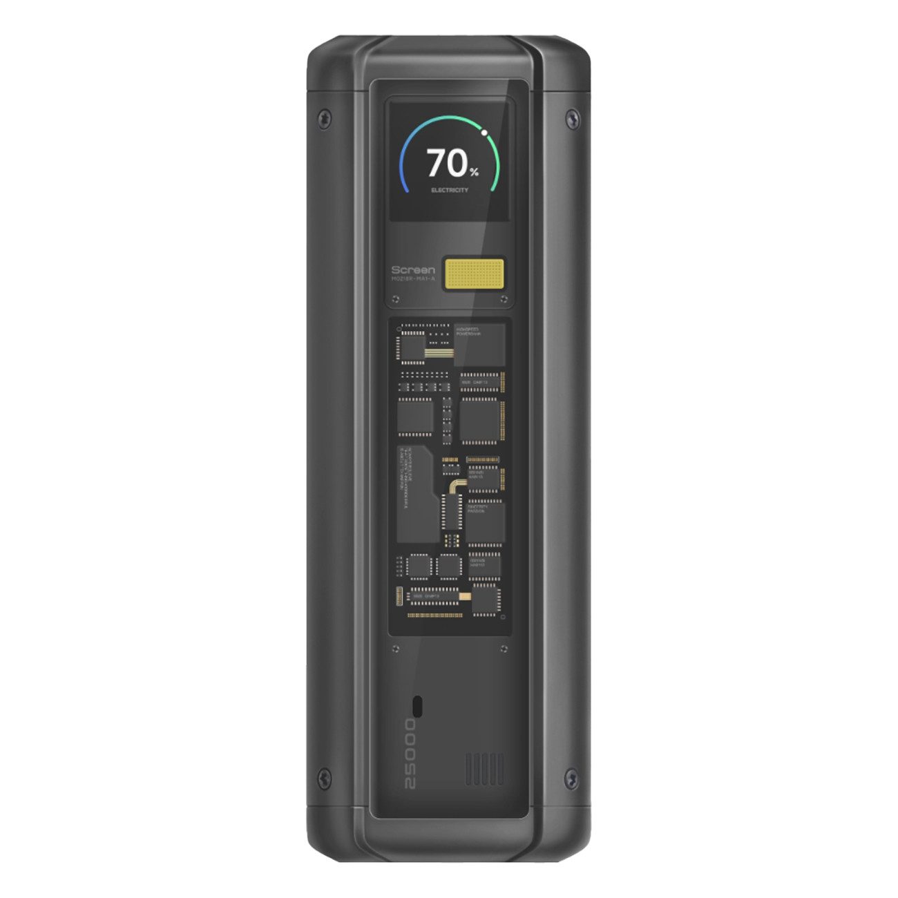 Neben der hohen Leistung überzeugt die Powerbank durch ihre einzigartigen Verkaufsargumente: Das intelligente Farbdisplay informiert Sie klar über den aktuellen Ladezustand und die verbleibende Energie, während das stilvolle, transparente Design einen Blick auf das beeindruckende Innenleben gewährt. Diese Powerbank ist nicht nur funktional, sondern auch ein echter Hingucker mit ihrem modernen, kantigen Design.