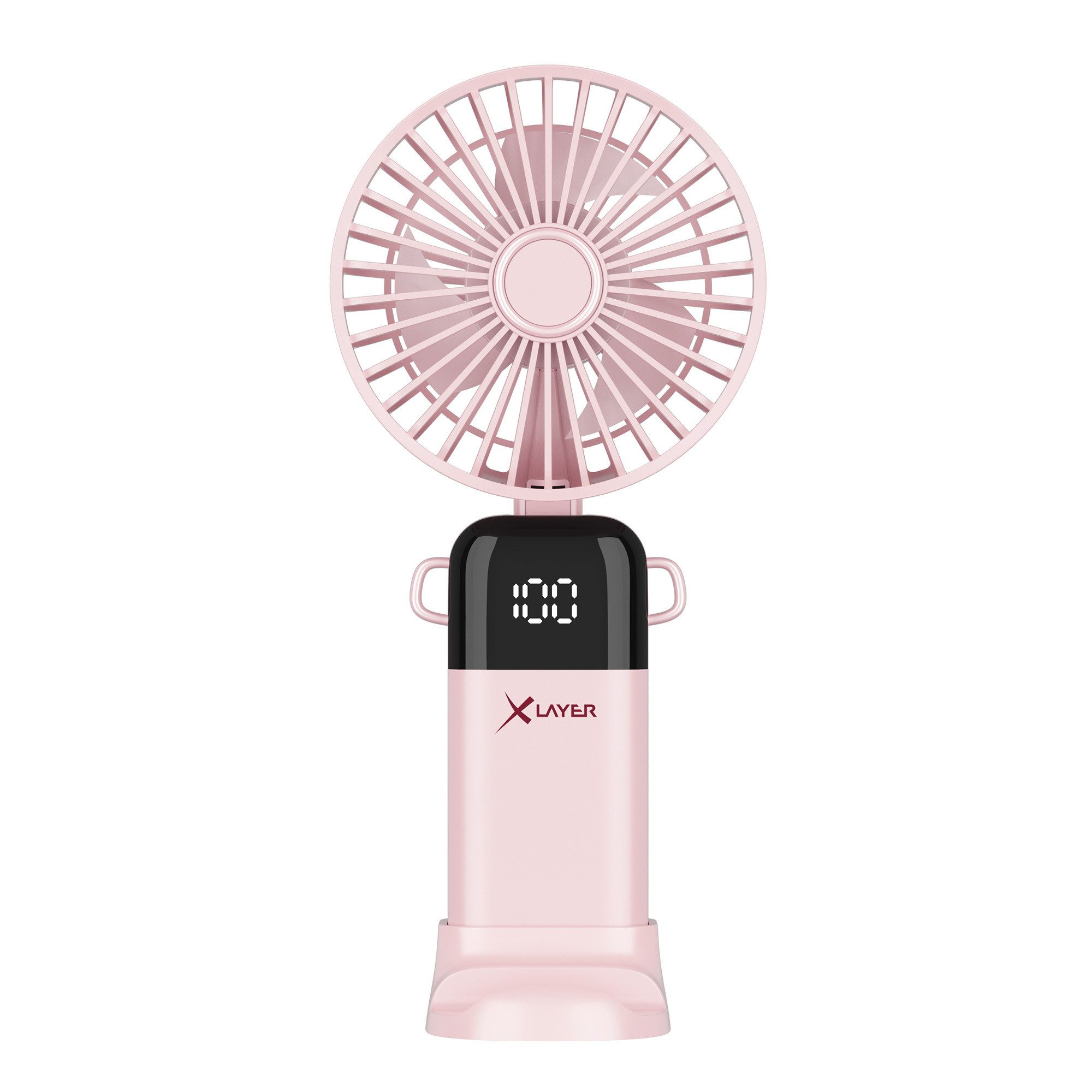 Art Bedienung | Hand-/Standventilator I 5 einstellbare Geschwindigkeitsstufen I Integrierter Akku mit 1.200 mAh Kapazität I Laufzeit bis zu 6 Stunden I Inklusive USB Typ C-Ladekabel I Klappbar mit Smartphone-Halterung |