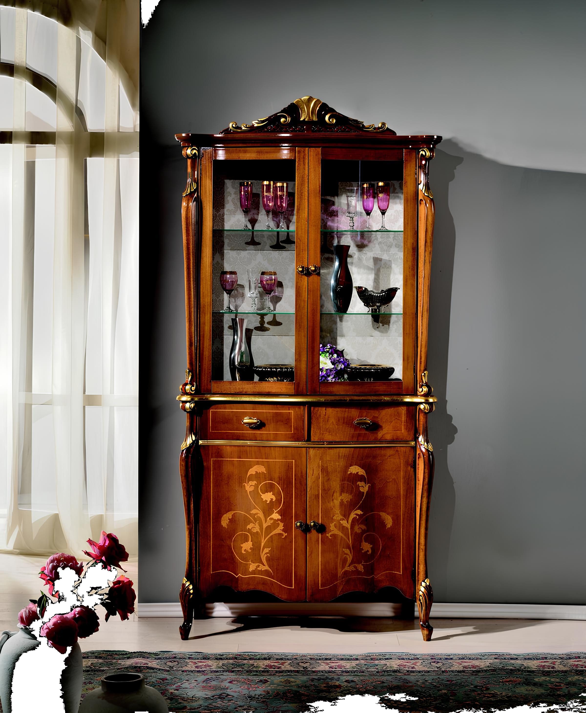 Diese Vitrine im klassischen Stil ist ein elegantes und zeitloses Möbelstück für das Wohnzimmer. Das Design stammt aus Italien und besticht durch seine hochwertige Verarbeitung und edle Optik. Die Schränke bieten viel Stauraum und sind ideal für die Aufbewahrung von Geschirr, Dekoration oder anderen Wohnaccessoires. Diese neuen italienischen Möbel verleihen jedem Raum eine luxuriöse Note und sind ein echter Blickfang in jedem Zuhause.
