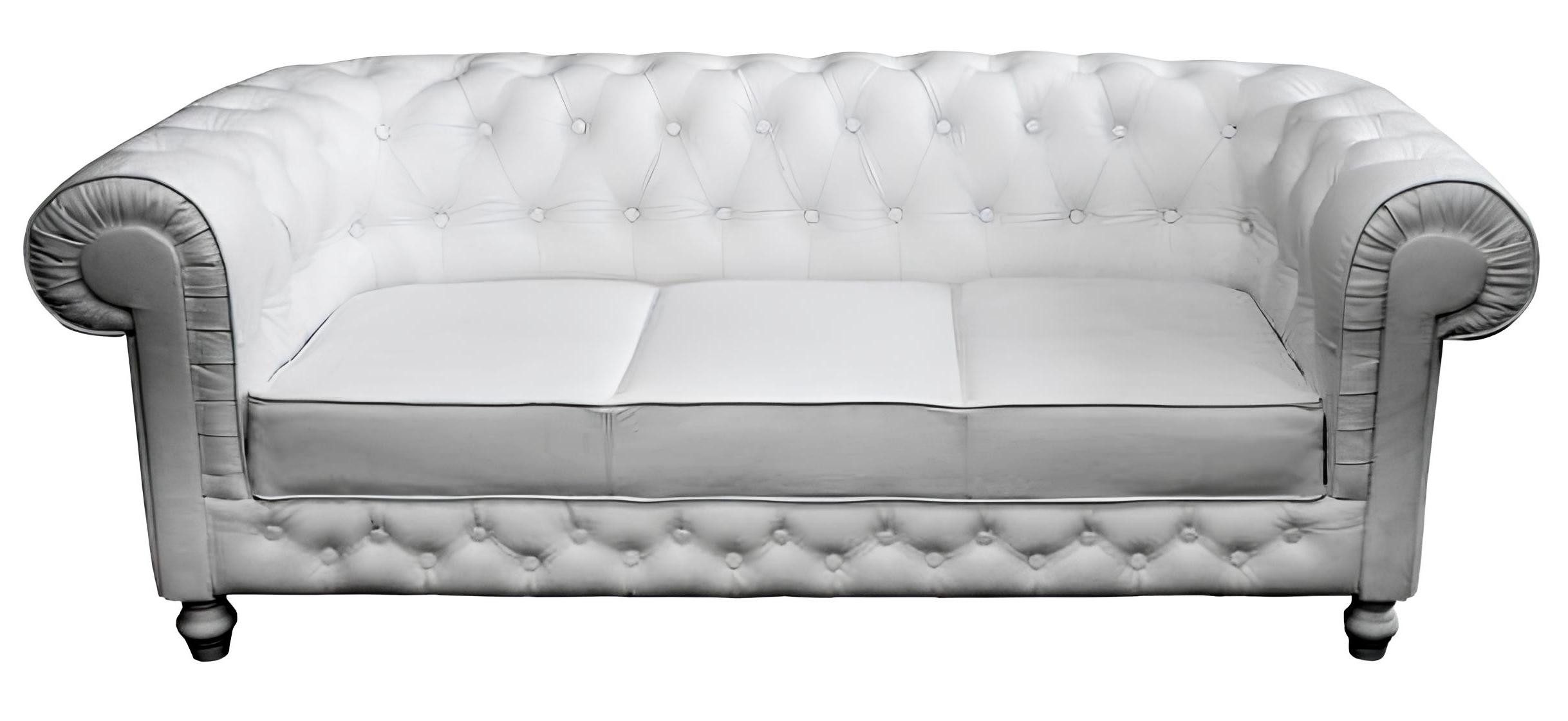 Die Chesterfield Couch Sofa Garnitur WHITTBY ist ein elegantes und zeitloses Möbelstück für Ihr Wohnzimmer. Der 3-Sitzer ist mit hochwertigem Polster aus Leder bezogen, was für ein luxuriöses und komfortables Sitzerlebnis sorgt. Die klassische Chesterfield-Optik mit den charakteristischen Knöpfen und der edlen Verarbeitung verleiht dieser Couch einen besonderen Charme und macht sie zum Blickfang in jedem Raum. Genießen Sie entspannte Stunden auf dieser stilvollen Chesterfield Couch Sofa Garnitur.