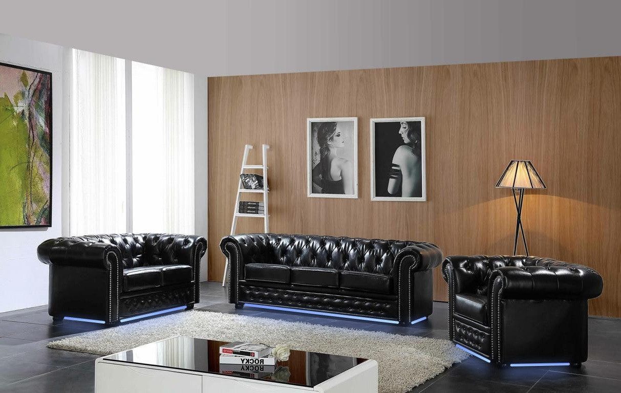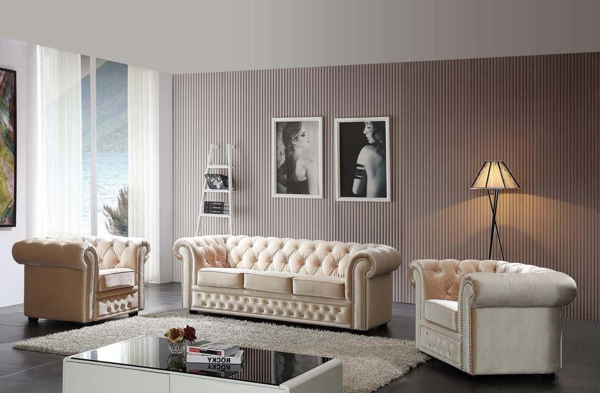 Chesterfield-Sofa Chesterfield Leder-Sitzgruppe mit Sofa Couch und Polstergarnitur