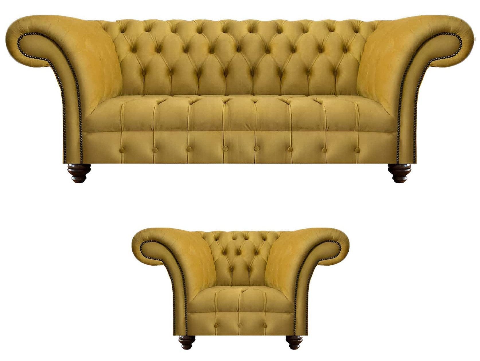 Diese luxuriöse Chesterfield gelbe Couch aus Textil ist ein echter Blickfang in jedem modernen Wohnzimmer. Der Sessel im 3-Sitzer-Format bietet nicht nur ausreichend Platz zum Entspannen, sondern überzeugt auch mit seinem eleganten Design. Das 2-teilige Set besticht durch hochwertige Verarbeitung und edle Details, die jedem Raum eine stilvolle Note verleihen. Mit dieser Couch wird das Wohnzimmer zu einer gemütlichen und zugleich schicken Wohlfühloase.