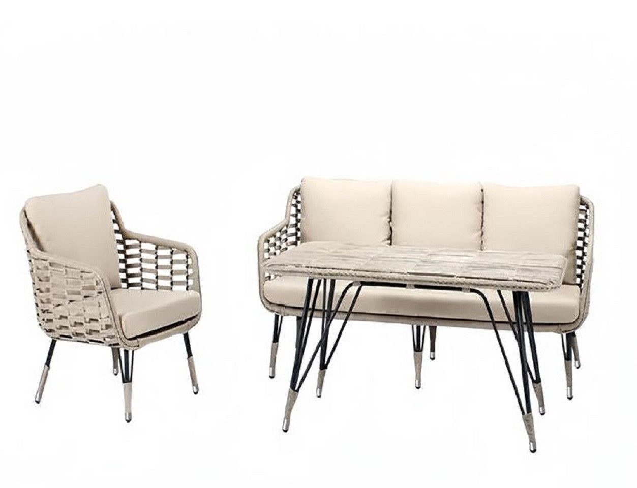 Xlmoebel Gartenlounge-Set Gartenmöbel Set in Beige mit modernem Rattan Sofa, hochwertigem, (3tlg Set(Sofa 3 Sitzer+Sessel+Couchtisch), Hergestellt in Europa
