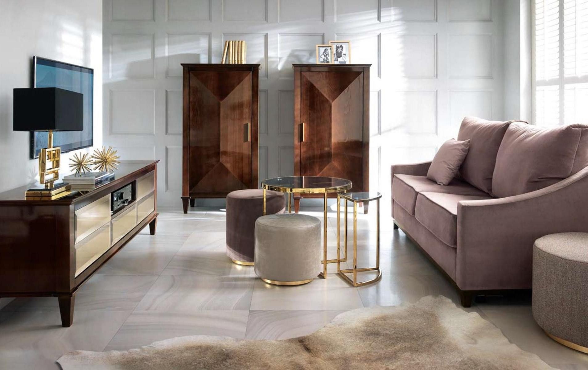 Serie | Set 7tlg Wohnzimmer ( Sofa + 3xHocker + 2xSchrank + RTV ) |