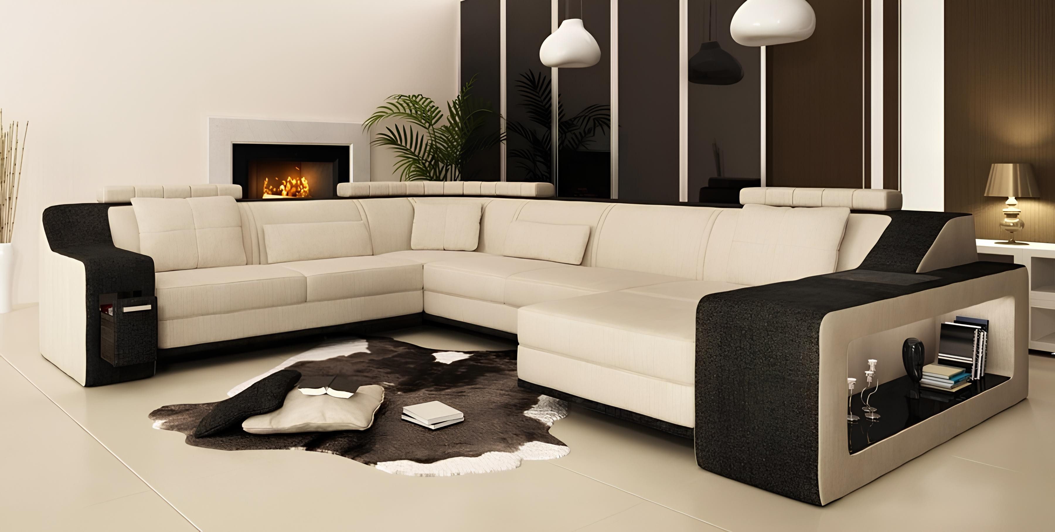 Serie | Ecksofa U-Form Textil Zeus "Beige / Schwarz" |