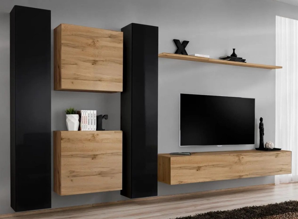 Serie | Wohnwand + TV Ständer + 4x Wandschrank + Wandregal |