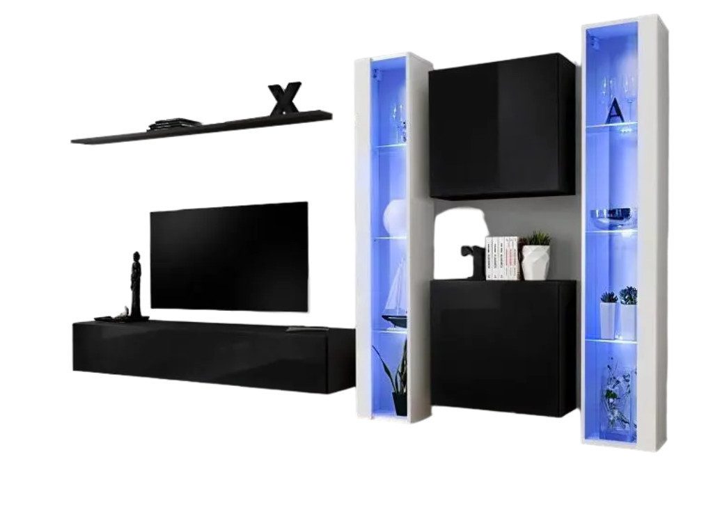 Serie | 2x Wandschrank , Wohnwand, Wandregal, TV Ständer, 2x Hänge, Vitrine |