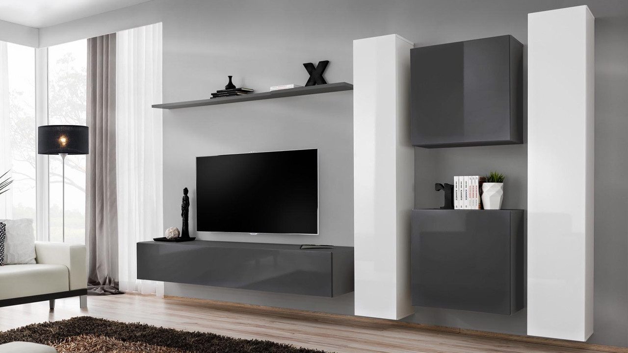 Serie | Wohnwand + TV Ständer + 4x Wandschrank + Wandregal |