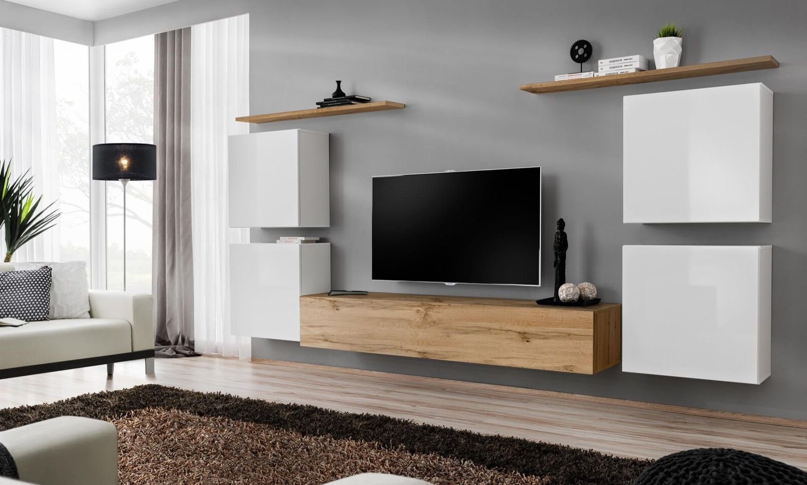 Serie | 1x Wohnwand + 1x TV Ständer + 4x Wandschrank + 2x Wandregal |