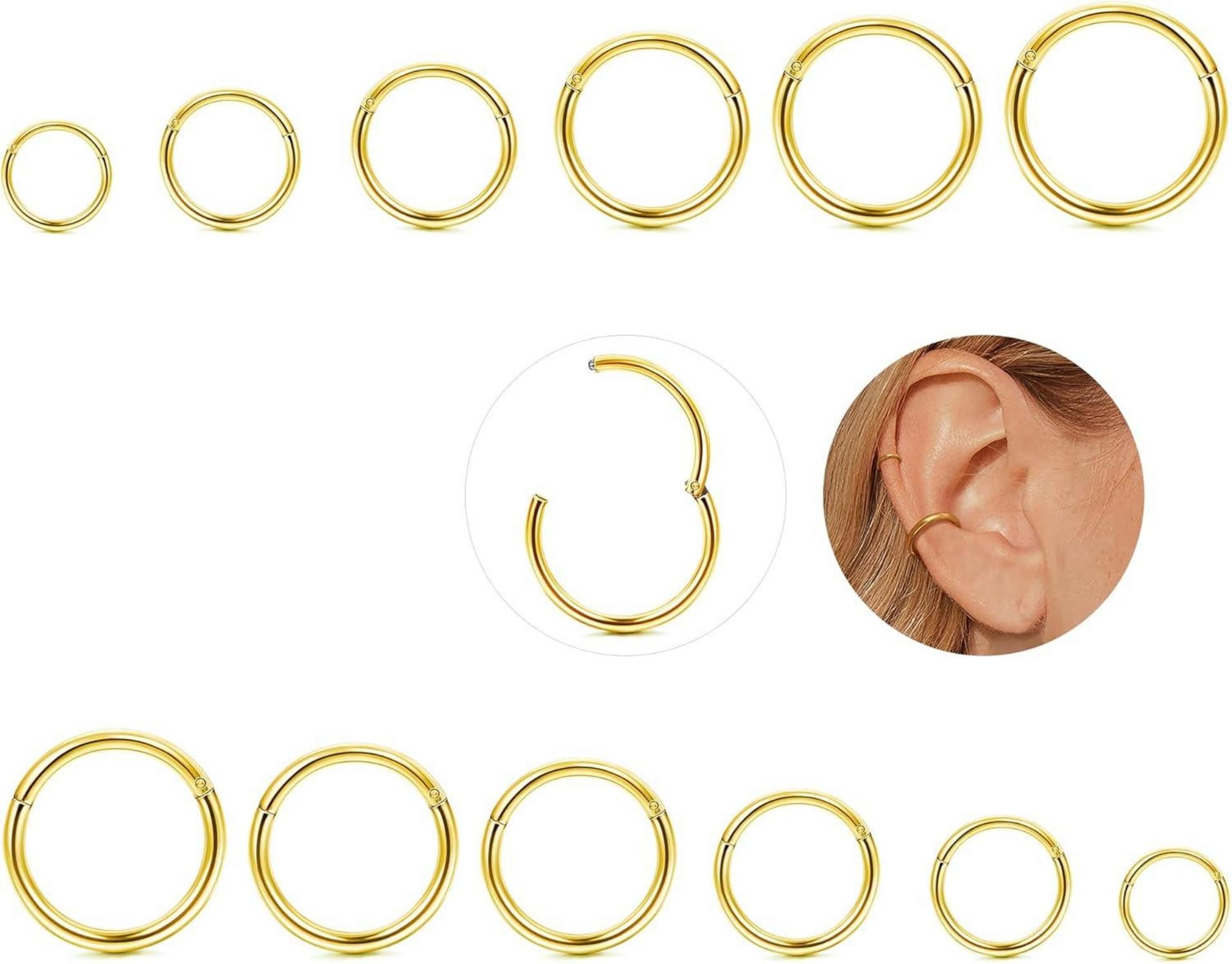 YADOCA 12 Stück 316L Edelstahl Nasenpiercing Ring Helix Piercing Hypoallergen 16G Nasenringe Conch Septum Tragus Ohr Piercings für Damen Herren 6-16mm bietet Ihnen hochwertige Piercings für verschiedene Körperstellen. Der Chirurgenstahl der Ringe ist nickelfrei und hypoallergen, was sie auch für empfindliche Haut geeignet macht. Mit 6 verschiedenen Größen von 6 mm bis 16 mm sind die Creolen vielseitig einsetzbar und passen zu Ihren individuellen Styles. Die flexiblen Scharniere sorgen für einen angenehmen Tragekomfort und ein einfaches Wechseln der Piercings.