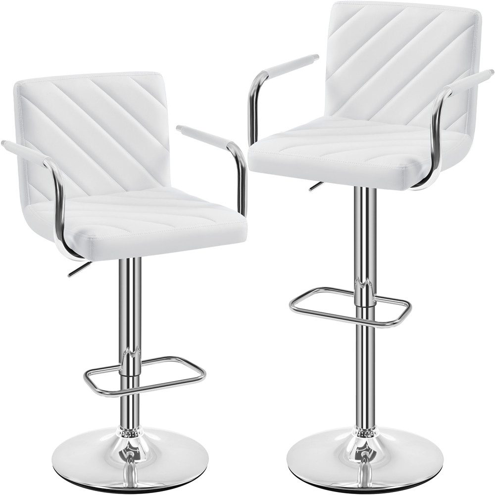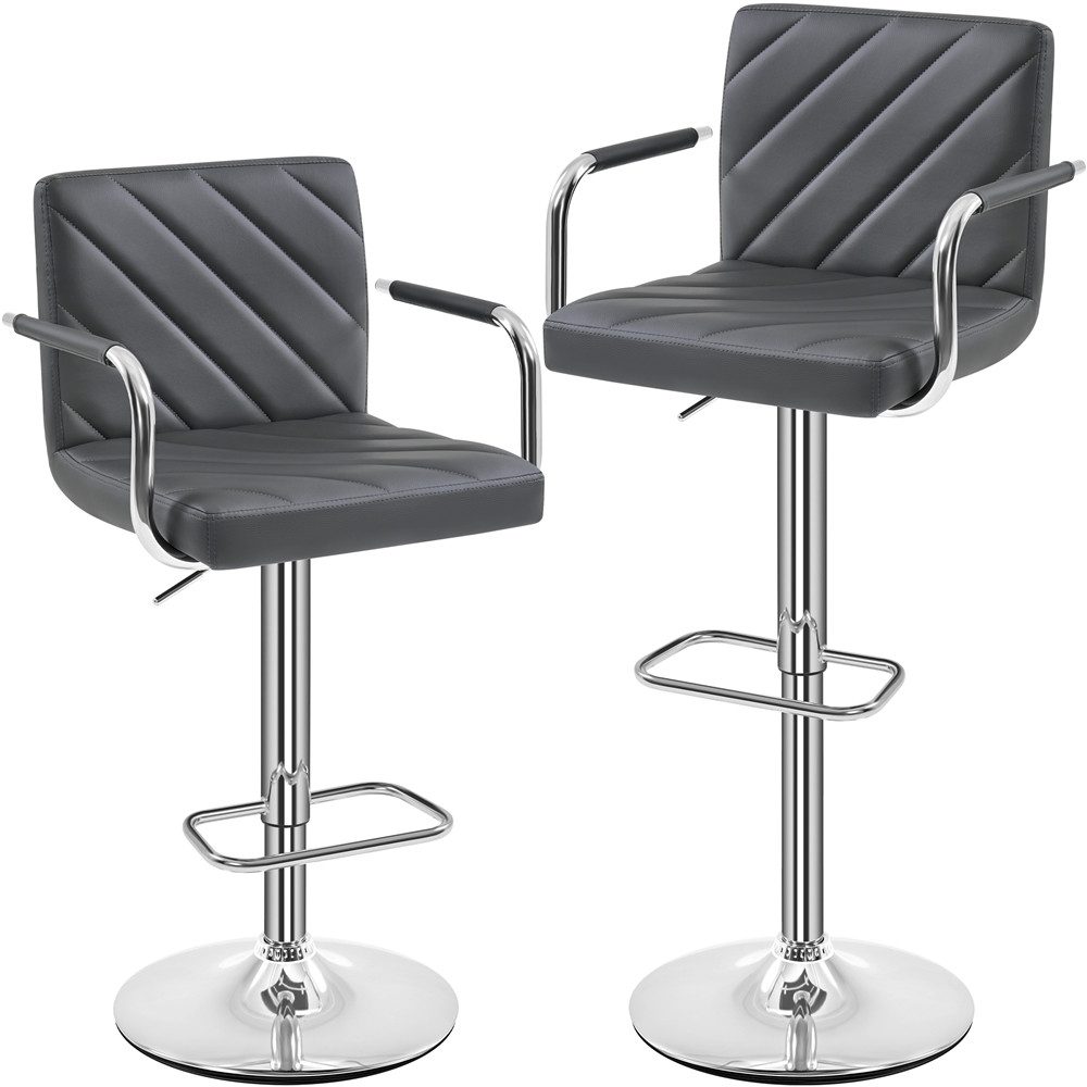 Der höhenverstellbare Hocker passt sich leicht verschiedenen Tischen und Theken an und sorgt für angenehmen Sitzkomfort. Dieses Set umfasst zwei Hocker mit robustem Kunstledersitz, der weich gepolstert ist. Die Rückenlehne und Sitzfläche sind mit diagonalen Linien verziert, die zusätzliche Eleganz verleihen. Jeder Hocker ist in der Höhe verstellbar, damit Sie ihn an die Körperform und die Thekenhöhen anpassen können. Der drehbare Sitz ermöglicht Bewegungsfreiheit, während die Fußstütze einen Platz zum Entspannen Ihrer Füße und Beine bietet, wenn Sie die Sitzposition wechseln möchten. Dieses stilvolle und praktische Hocker-Set ist ideal für Küche, Bar, Esszimmer, Café, Restaurant, Salon und dergleichen.