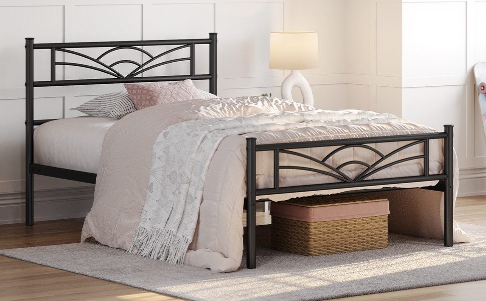 Die schlichten Linien und das einzigartige Wolkenmuster machen dieses stilvolle und attraktive Metallbettgestell aus. Dieses Metallbett besteht aus Metallrohren, die mit einer Mattlackierung überzogen sind. Die massiven Metallbeine stützen den Metallrahmen fest und sorgen für eine hohe Stabilität und Tragfähigkeit. Die Höhe des Kopf- und Fußteils ermöglicht es Ihnen, die gewünschte Stärke der Matratze zu wählen. Das Bettgestell weist auch die richtige Einlegetiefe auf, damit die Matratze stabil und unbeweglich bleibt. Die Bodenfreiheit ermöglicht einen zusätzlichen Stauraum. Unter dem Bett können Sie Ihre Aufbewahrungsboxen sowie Kleidung und Schuhe, die nicht der Saison entsprechen, unterbringen. Der ausreichende und optimale Schlaf ist eine Voraussetzung für andere Aktivitäten. Holen Sie sich einen passenden und stabilen Bettrahmen und genießen Sie eine angenehme Nachtruhe!
