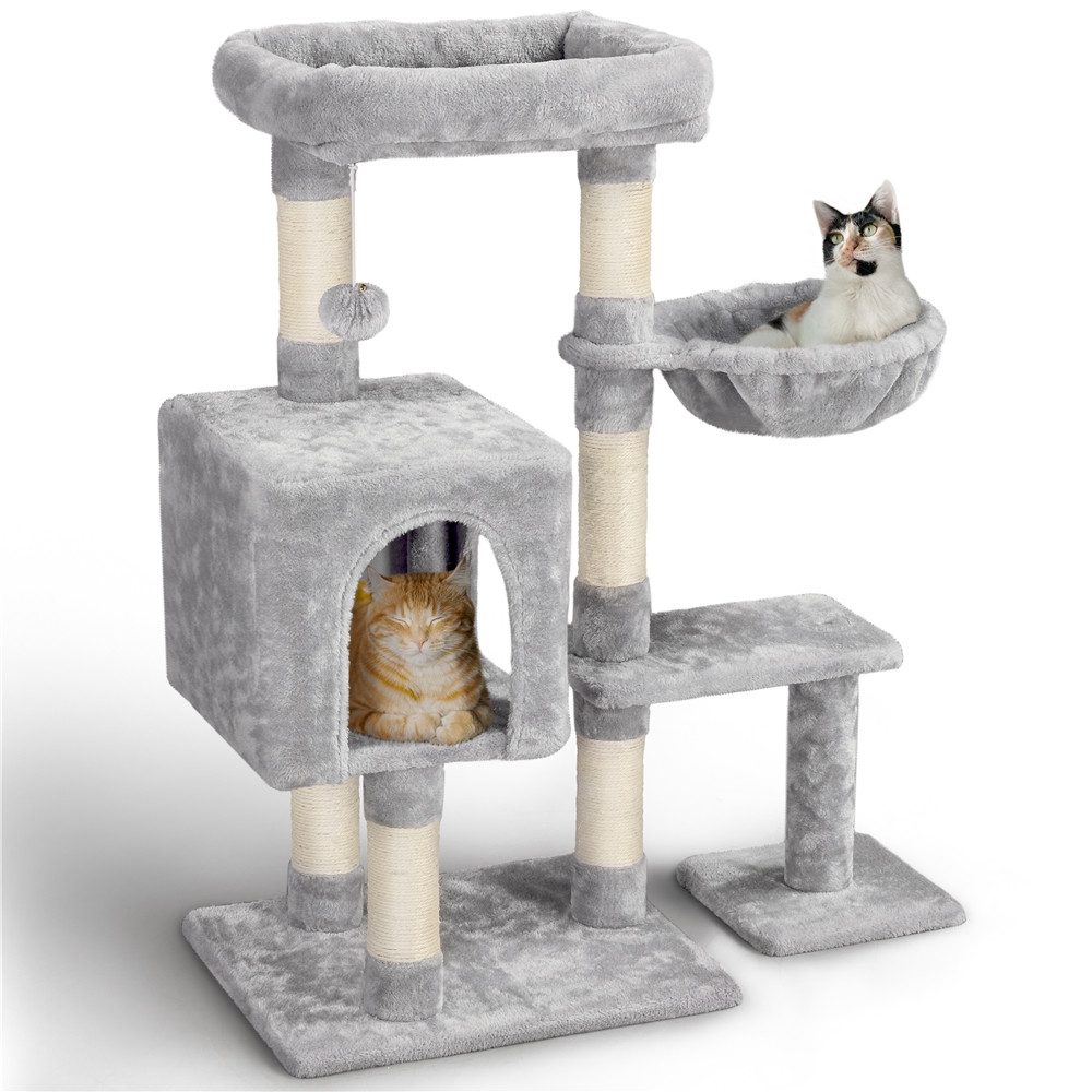 Wie verbringen Ihre Katzen den ganzen Tag? Sie erkunden ihr Revier, klettern auf und ab, wetzen ihre Krallen und verbringen dann lange Zeit in der Sonne. All dieser Tätigkeiten können mit diesem Kratzbaum erledigt werden.