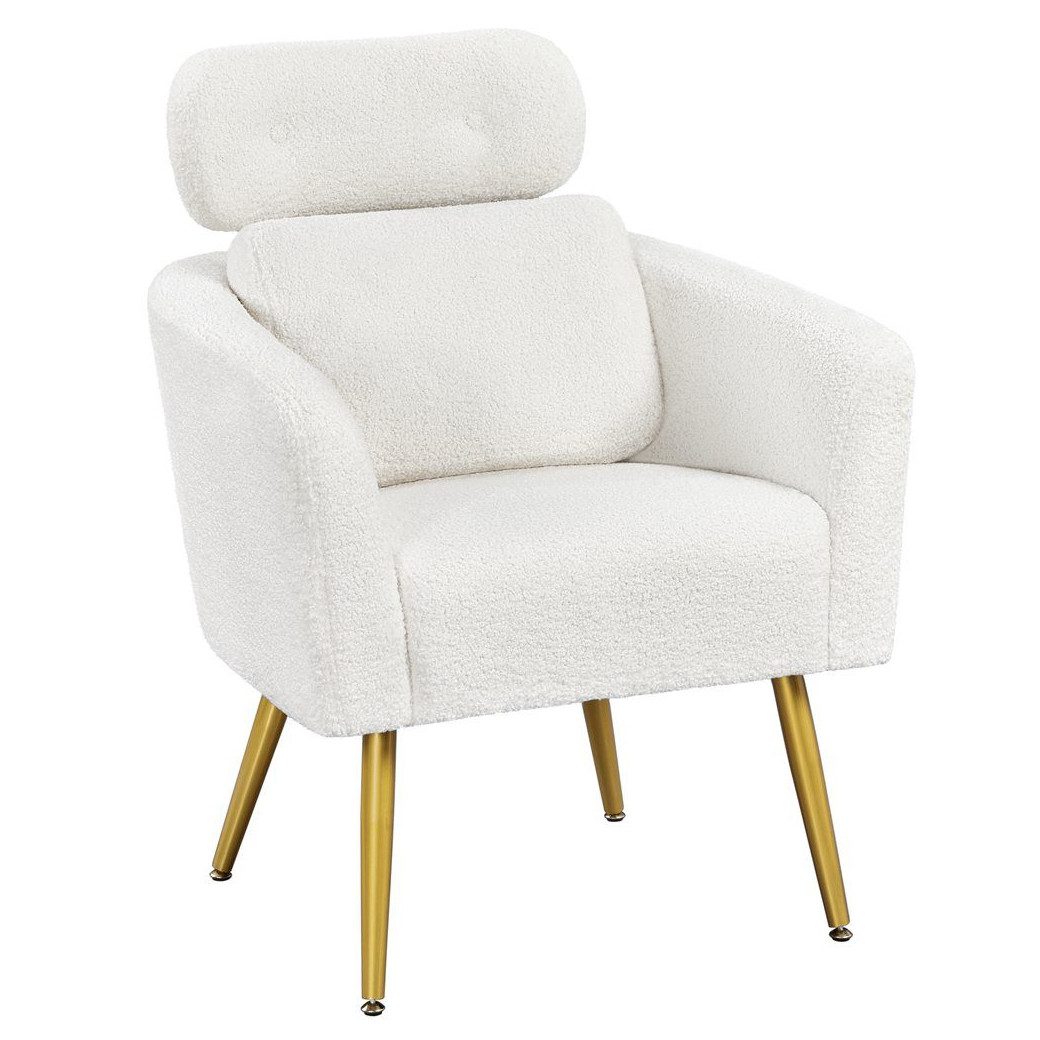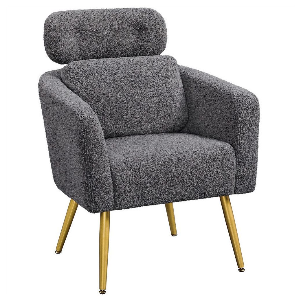 Suchen Sie nach einem gemütlichen und eleganten Lehnsessel für Ihr Wohnzimmer? Dieser Sessel mit einer höhenverstellbaren Kopfstütze ist eine ideale Auswahl. Dieser Sessel ist mit dem flauschigen Bouclé-Gewebe bezogen. Das robuste Gestell aus Sperrholz und die soliden Metallbeine ermöglichen eine hohe Stabilität und eine lange Lebensdauer. Всеs ist auf Sitzkomfort entworfen: die breite Sitzfläche, die einteilige Rückenlehne und Armlehnen, die verstellbare Kopfstütze und die Lendenstütze. Dieser Armlehnstuhl wird ein Blickfang im Wohnzimmer, Schlafzimmer, Esszimmer, Küche, Büro und dergleichen und verleiht dem Raum das gewisse Extra!