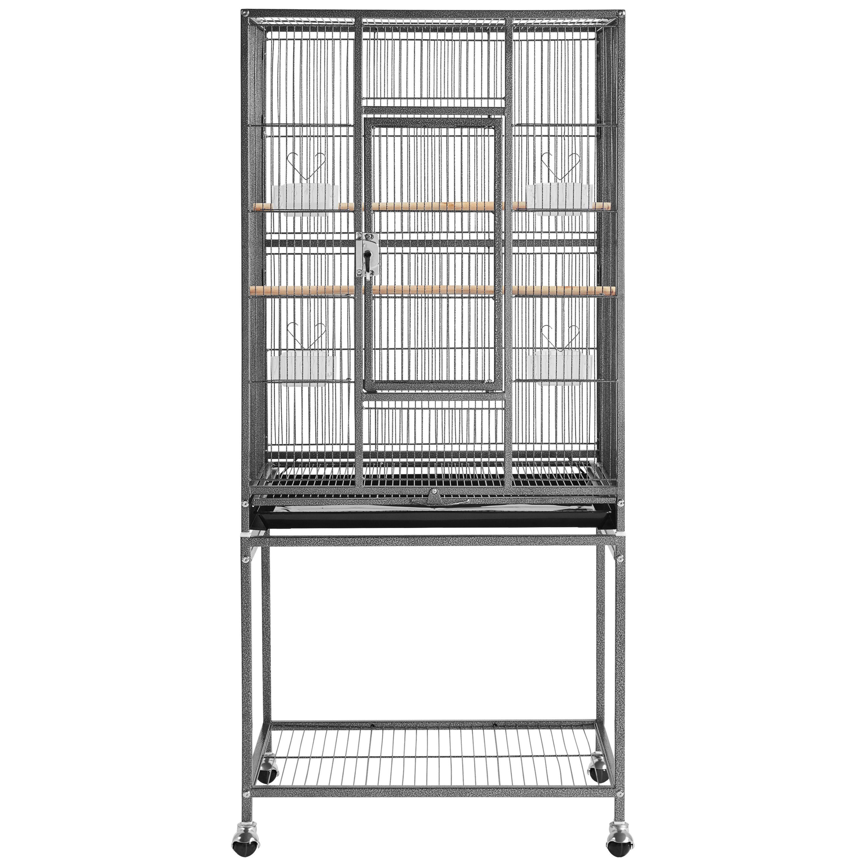 Eine pflegeleichte Vogel- und Papageienvoliere in klassischer Optik mit Schmutzfang und Zubehör. Bieten Sie Ihrem Papagei oder ähnlichen Großvögeln das optimale Zuhause für Haltung und Pflege. Ihr Papagei hat das schönste und komfortabelste Zuhause verdient. Die Vogelvoliere bietet genügend Platz für Vögel und Papageien. Die weiträumigste Spielumgebung für alle gefiederten Freunde. Ein sicherer Käfig, der einen Rückzugsort anbietet. Zudem ist der Käfig groß genug zum Klettern, Spielen und Toben. Durch die vier Rollen lässt sich die Voliere bewegen. Die große rechteckige Türe kann von außen leicht geschlossen oder geöffnet werden. Die Auffangschale greift großzügig Schmutz und Essensreste auf, lässt sich bequem wie eine Schublade herausziehen und leicht reinigen.