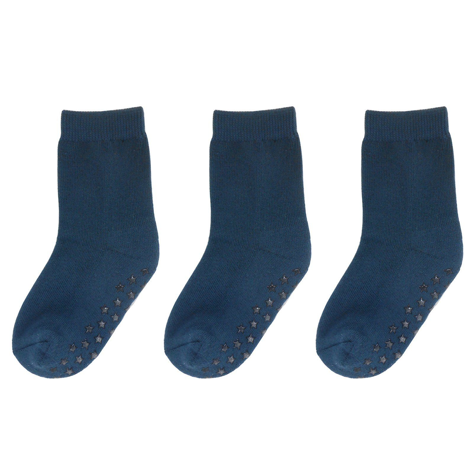 Yalion® weiche Kinder Socken mit Halbplüsch und Stoppernoppen an der Fußsohle im 3er Pack sind gegen Wegrutschen auf glatten Böden und kalte Füße gedacht. Die Socken sind sehr elastisch und bequem, die perfekte Passform garantiert dabei einen optimalen Tragekomfort. In Jungenfarben und Mädchenfarben sind die Socken erhältlich. Das Material besteht aus 73,2% Baumwolle; 23,2% Polyamid; 3,6% Elasthan. Gerne werden diese Socken auch über die Strumpfhosen gezogen, wodurch das Baby und Kleinkind immer warme Füße hat. Für alle die sich nicht sicher sind, welche Sockengröße man nimmt, es wird die Sockenlänge eingefügt, die EU Angabe sind nur Richtwerte. Es kann zu Größenunterschieden kommen, weil Kinder unterschiedlich schnell wachsen. Sockenlänge(Fußlänge): 9 cm (EU 11/12); Sockenlänge(Fußlänge): 10 cm (EU 13/14); Sockenlänge(Fußlänge): 11 cm (EU 15/16); Sockenlänge(Fußlänge): 12 cm (EU 17/18).