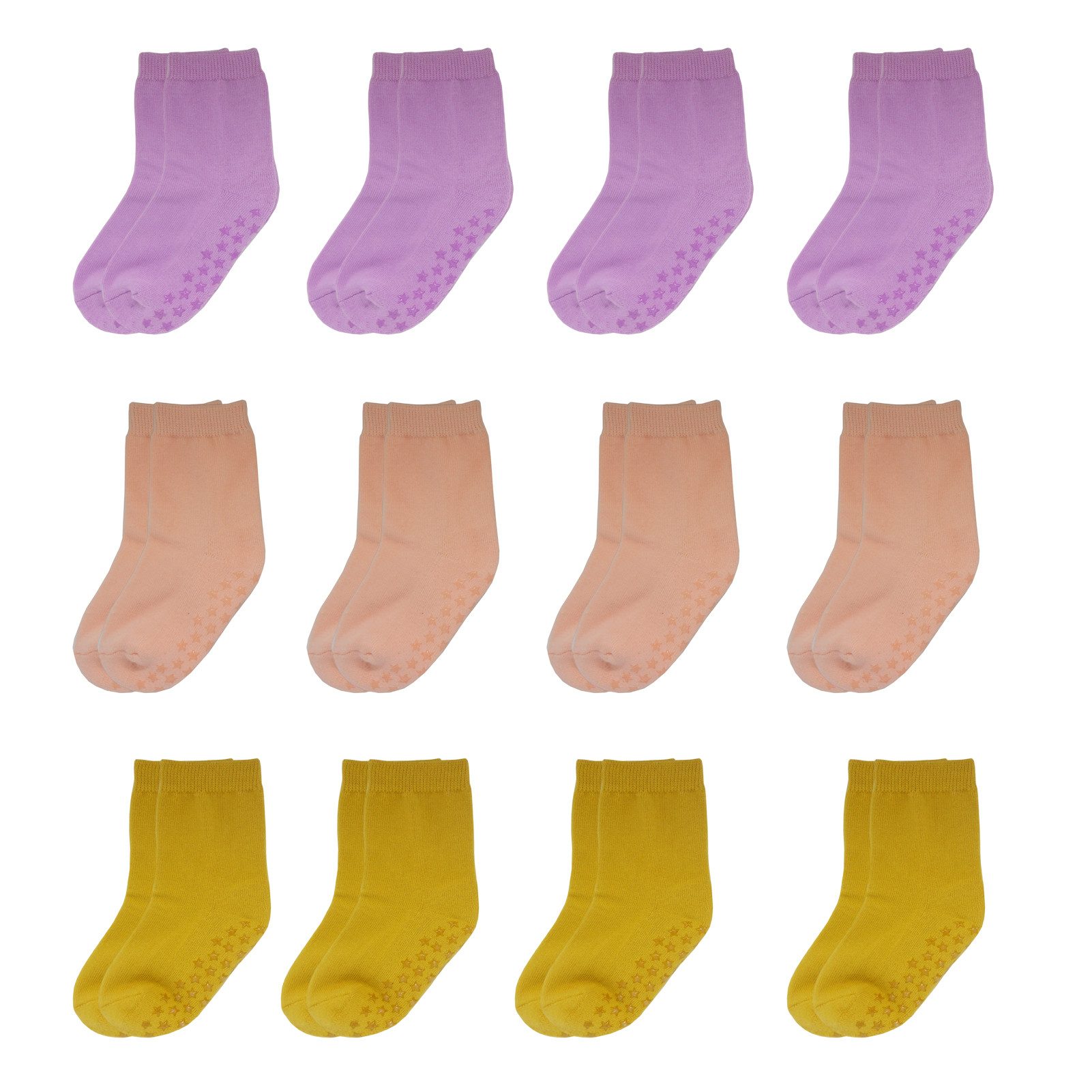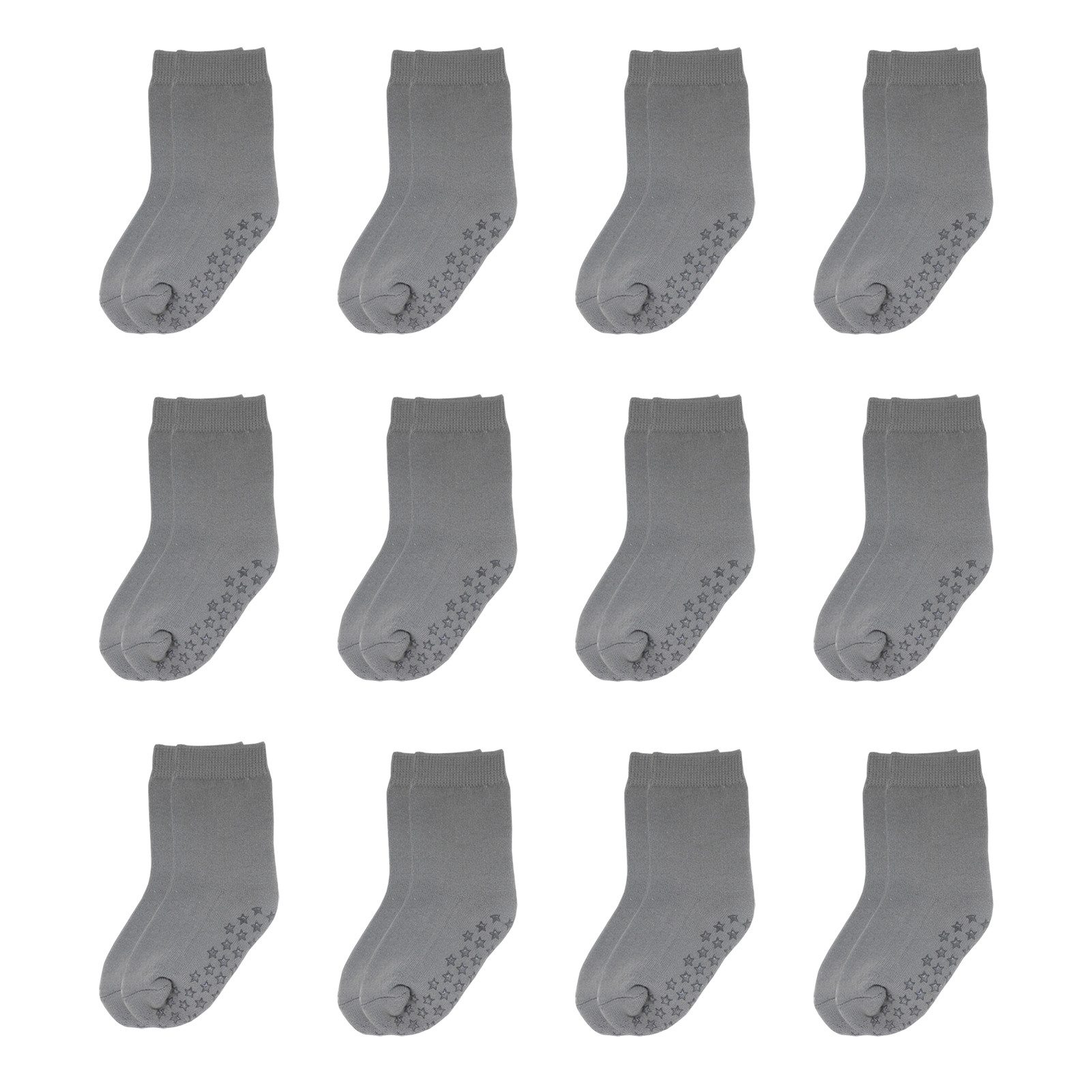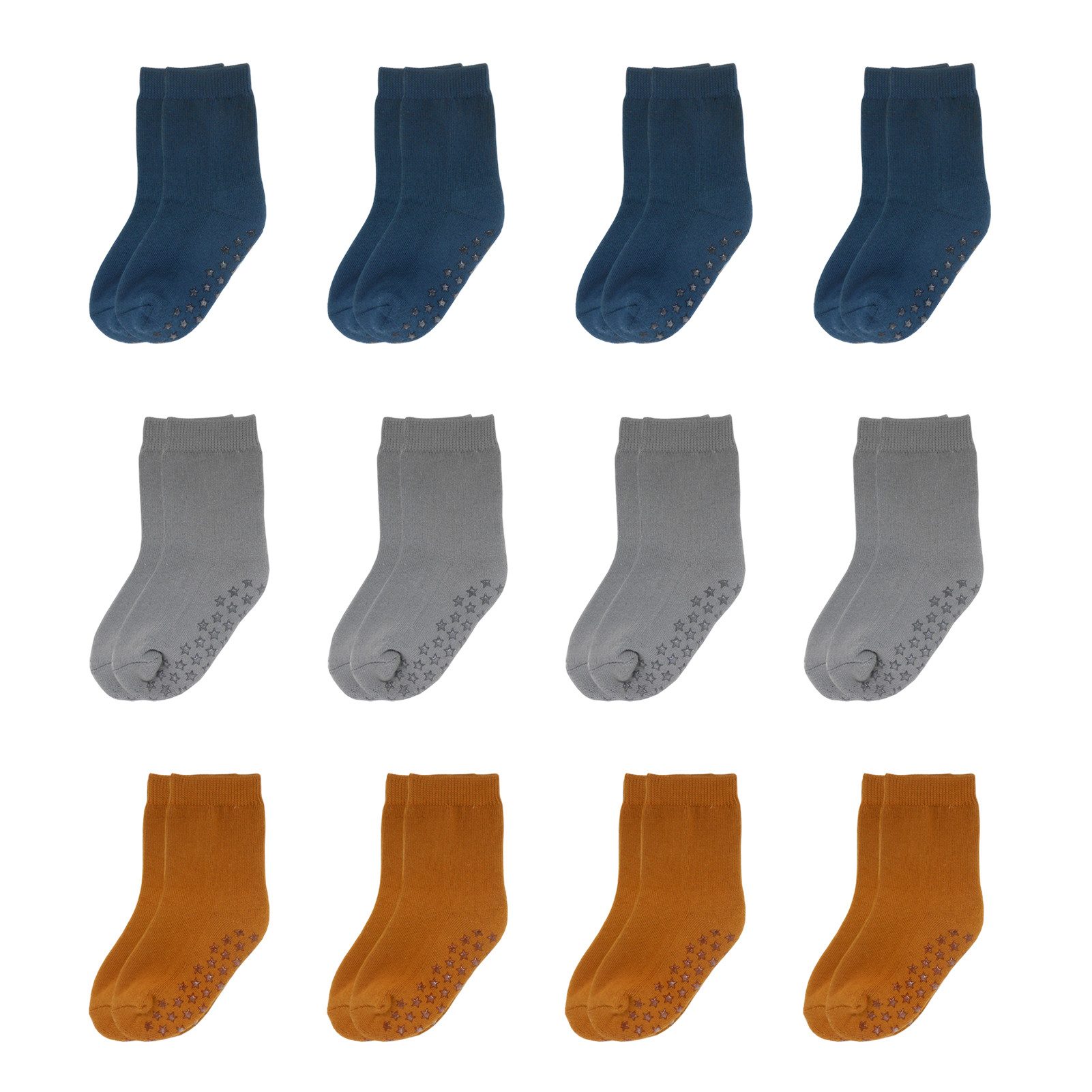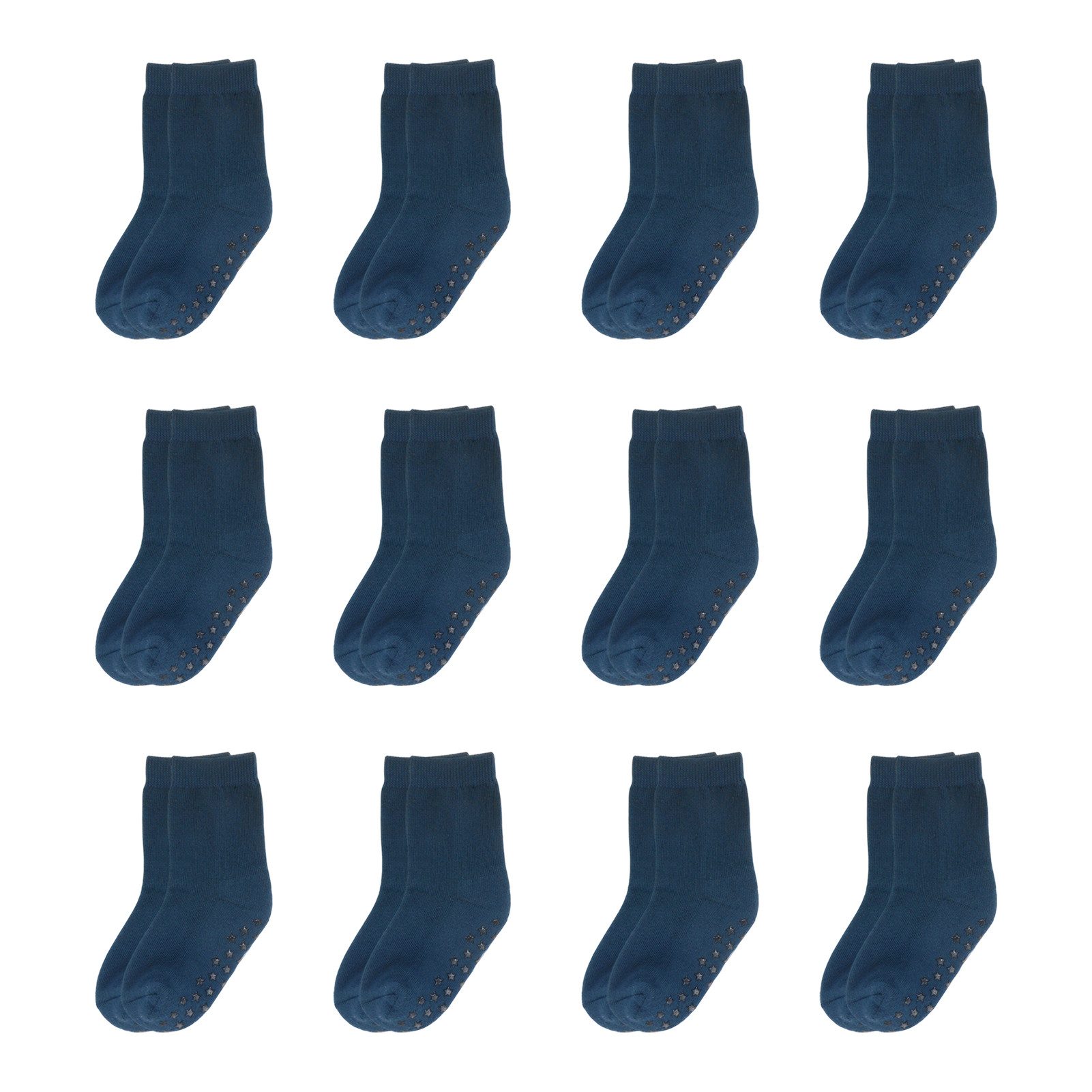 Yalion® weiche Kinder Socken mit Halbplüsch und Stoppernoppen an der Fußsohle im 12er Pack sind gegen Wegrutschen auf glatten Böden und kalte Füße gedacht. Die Socken sind sehr elastisch und bequem, die perfekte Passform garantiert dabei einen optimalen Tragekomfort. In Jungenfarben und Mädchenfarben sind die Socken erhältlich. Das Material besteht aus 73,2% Baumwolle; 23,2% Polyamid; 3,6% Elasthan. Gerne werden diese Socken auch über die Strumpfhosen gezogen, wodurch das Baby und Kleinkind immer warme Füße hat. Für alle die sich nicht sicher sind, welche Sockengröße man nimmt, es wird die Sockenlänge eingefügt, die EU Angabe sind nur Richtwerte. Es kann zu Größenunterschieden kommen, weil Kinder unterschiedlich schnell wachsen. Sockenlänge(Fußlänge): 11 cm (EU 15/16); Sockenlänge(Fußlänge): 12 cm (EU 17/18); Sockenlänge(Fußlänge): 13 cm (EU 19/20); Sockenlänge(Fußlänge): 14 cm (EU 21/22).