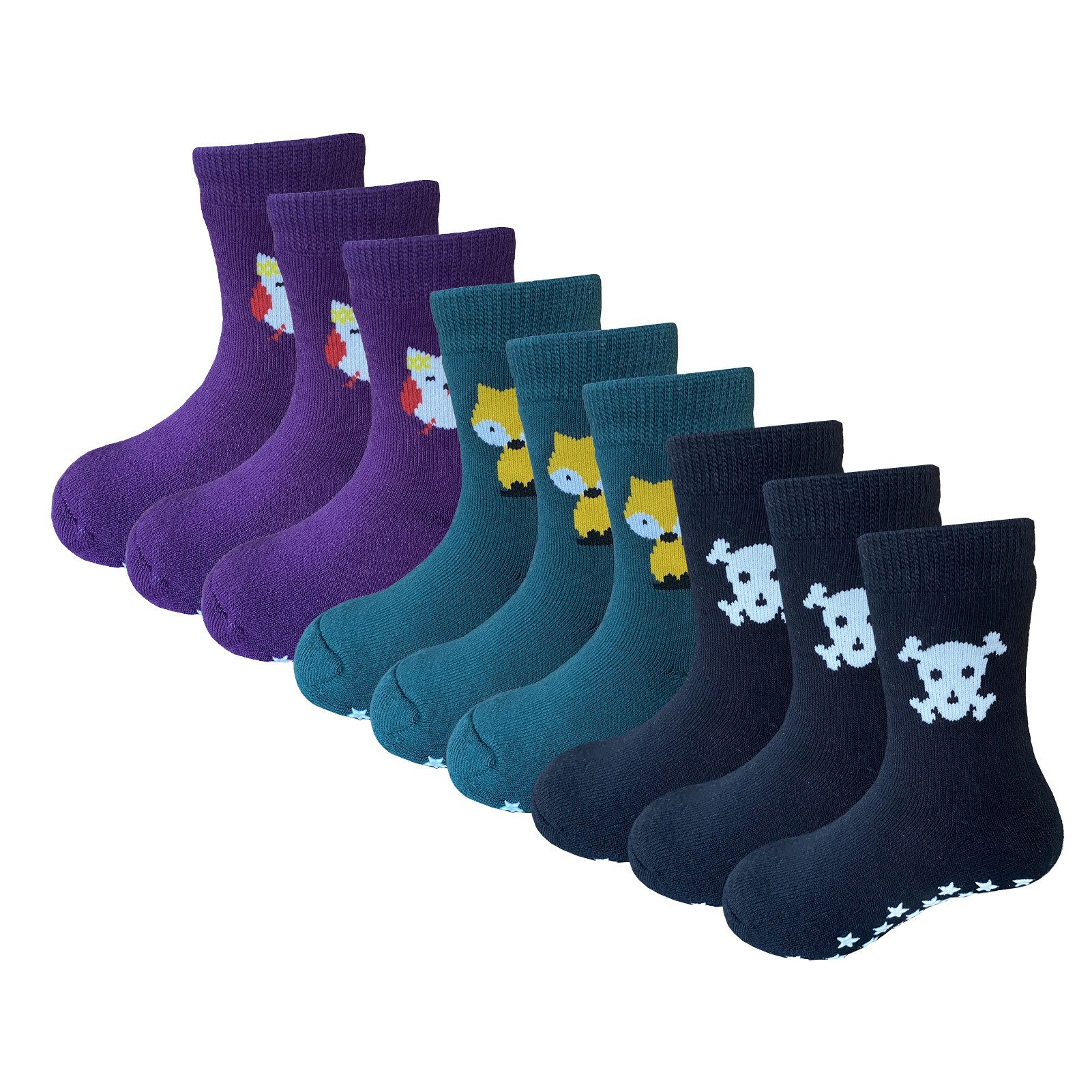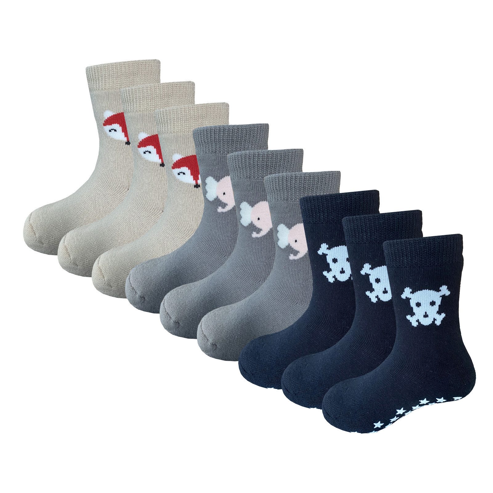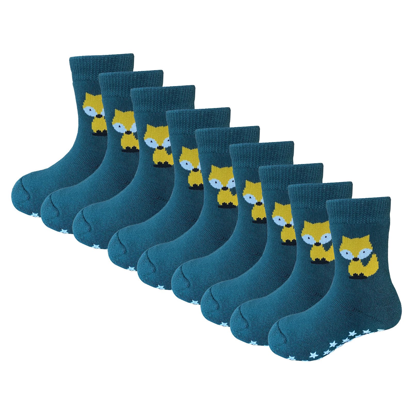 Yalion® weiche Kinder Socken mit Halbplüsch an der Fußsohle im 9er Pack sind gegen kalte Füße gedacht. Die Socken sind sehr elastisch und bequem, die perfekte Passform garantiert dabei einen optimalen Tragekomfort. In Jungenfarben und Mädchenfarben sind die Socken erhältlich. Das Material besteht aus 73,2% Baumwolle; 23,2% Polyamid; 3,6% Elasthan. Gerne werden diese Socken auch über die Strumpfhosen gezogen, wodurch das Baby und Kleinkind immer warme Füße hat. Für alle die sich nicht sicher sind, welche Sockengröße man nimmt, es wird die Sockenlänge(Fußlänge) eingefügt, die EU Größenangabe sind nur Richtwerte. Es kann zu Größenunterschieden kommen, weil Kinder unterschiedlich schnell wachsen. Sockenlänge(Fußlänge): 11 cm (EU 15/16); Sockenlänge(Fußlänge): 12 cm (EU 17/18); Sockenlänge(Fußlänge): 13 cm (EU 19/20); Sockenlänge(Fußlänge): 14 cm (EU 21/22).