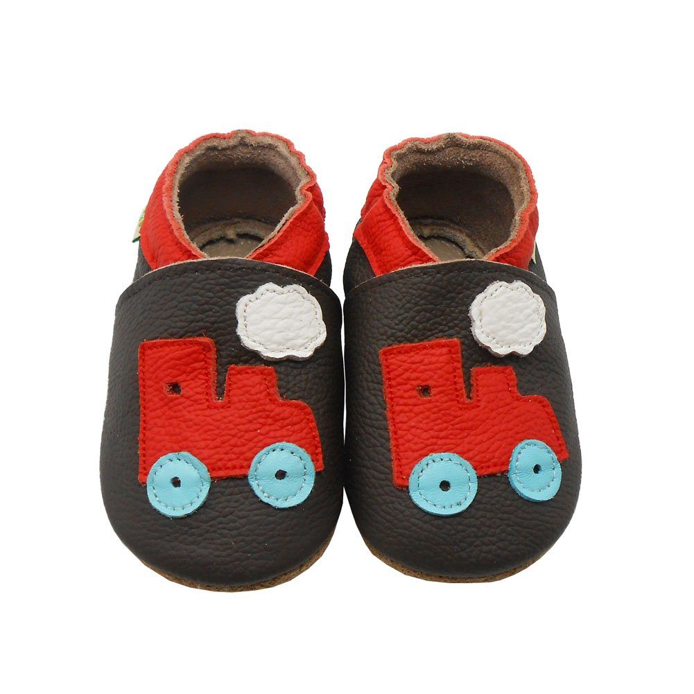 Yalion® Krabbelschuhe werden aus echtem Leder in liebvoller Handarbeit gefertigt, atmungsaktiv und weich. Die Schuhe lassen sich für die kleinen Kinderfüße leicht verformen, sind weich und genau passend für die zarten Kinderfüßchen. Die abgerundete Spitze und Ferse bieten komfortablen Platz für Kleinkinder und das natürliche Wachstum. Die Schuhe hinterlassen auch keine Druckstellen. Die Kleinen können damit genauso gut laufen wie barfuß, da die Schuhe schön weich sind. Sie schützen die Füße beim Laufen und verhindern das Rutschen. Beim Krabbeln sitzen die Schüchen auch 1A. Die Schuhe lassen sich durch das Gummiband leicht anziehen, der Gummizug ist elastisch und gleichzeitig stabil. Das Leder ist weder zu dünn noch zu dick. Sie können als Krabbelschuhe, Hausschuhe, Turnschuhe, Lederpuschen genutzt werden und egal ob in der Familie oder in der Krabbelgruppe immer der Hingucker!