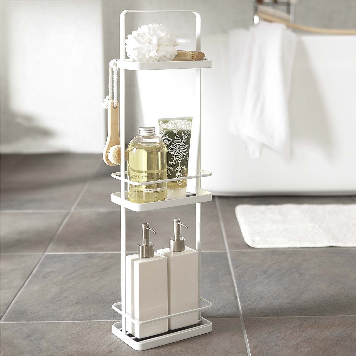 Yamazaki Badregal "Tower" stehend ohne Bohren 18x67x12cm, Badablage, platzsparend, für Badutensilien, Ablage, feistehend, tragbar, Metallgestell 67cm