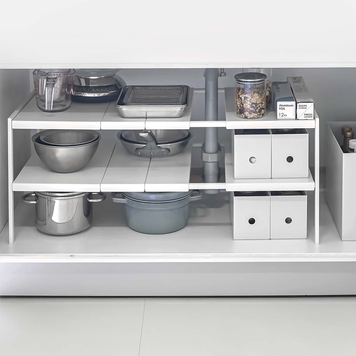 Ausführung | ausziehbar von 50 bis 85cm, mit 8 einzelnen Regalböden, 2 Ebenen |