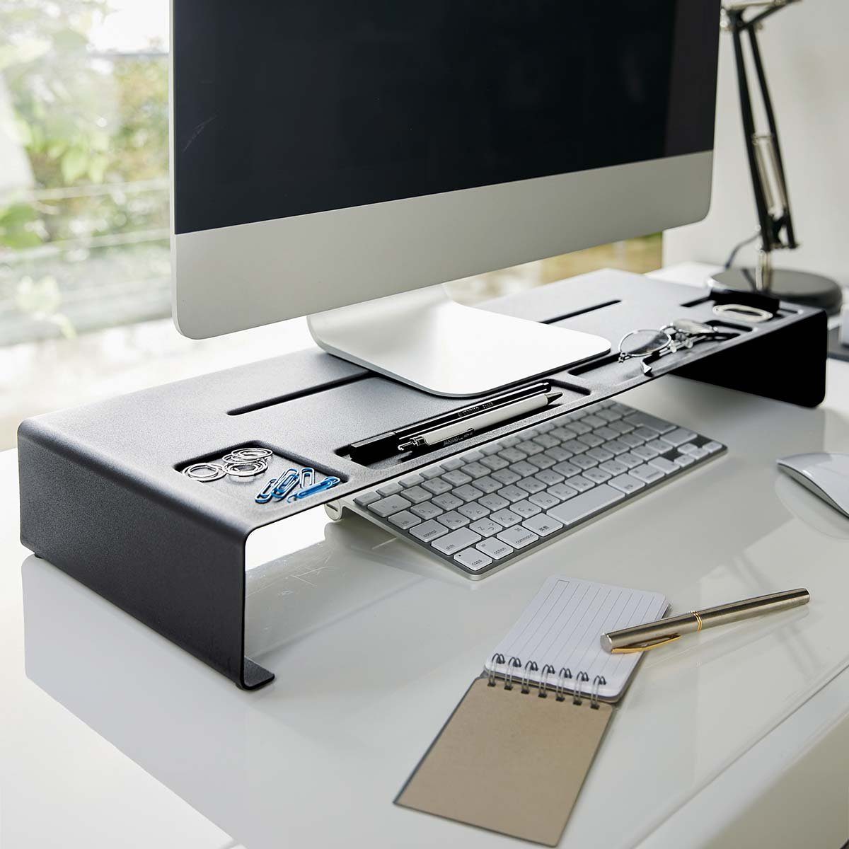 Funktionen | zur Bildschirmerhöhung, mit Ablagemöglichkeiten für Utensilien, stabile Ausführung aus Metall, 24cm Tiefe |