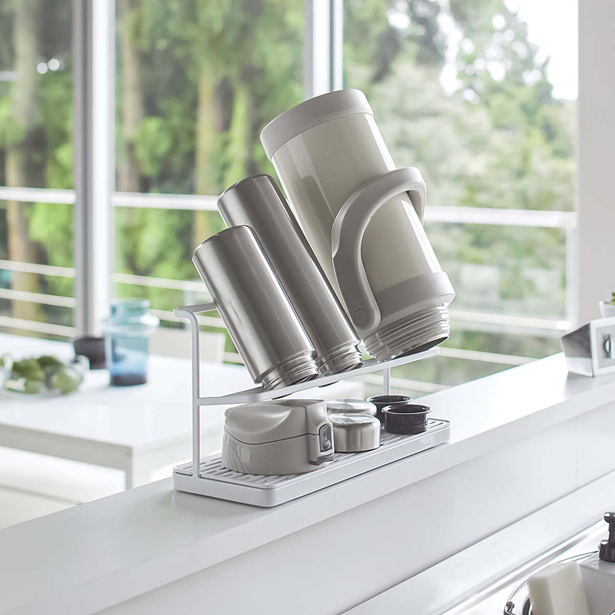Yamazaki Trockenständer "Tower" 32x17x12cm, Zubehör für Spülbecken, Spüle, Abwasch, Abtropfgestell für Flaschen, Wasserauffangschale, Trockengestell