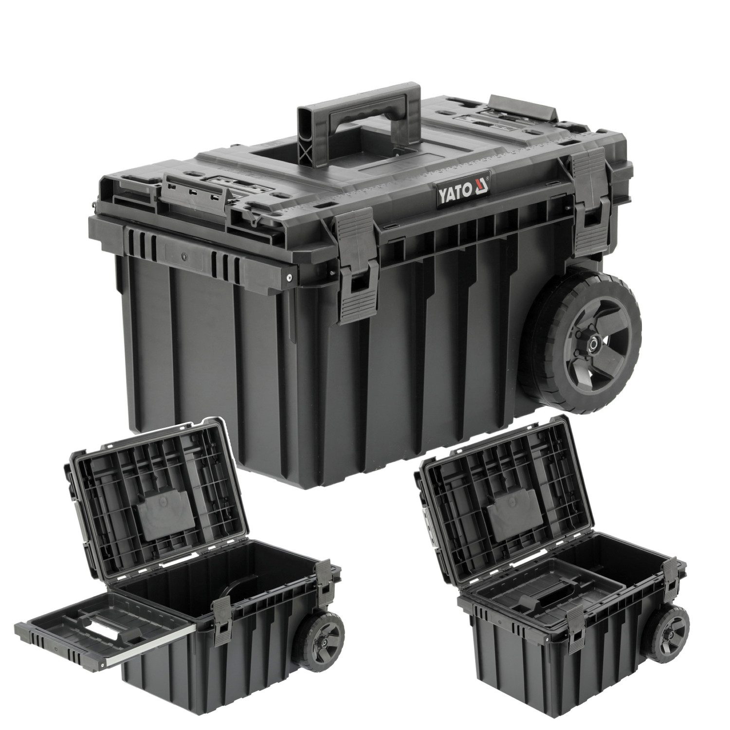 Auflaufräder ermöglichen den sicheren Transport von Kistensets und Organizern.