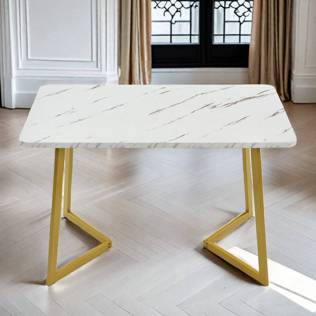Luxus und Eleganz: Erleben Sie Luxus mit unserer MDF-Tischplatte in Marmoroptik und den eleganten Beinen aus goldenem Eisen, die Ihr Zuhause noch eleganter machen.