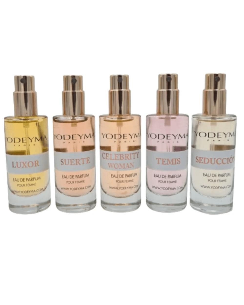 Entdecken Sie die luxuriöse Welt der YODEYMA Parfums mit unseren fünf exquisiten Düften: Temis, Luxor, Seduccion, Suerte und Celebrity Woman. Jedes dieser Parfums ist eine Hommage an Raffinesse, Eleganz und einzigartigen Stil. Lassen Sie sich von den unvergleichlichen Duftnoten verzaubern und genießen Sie die zahlreichen Vorteile, die jedes Parfum zu bieten hat.