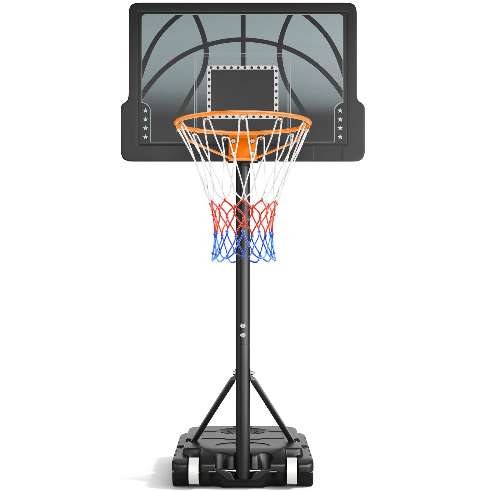Stellen Sie die Höhe Ihres Basketballkorbs schnell und einfach ein, indem Sie einfach den Knopf lösen und die Stange auf die gewünschte Höhe schieben.