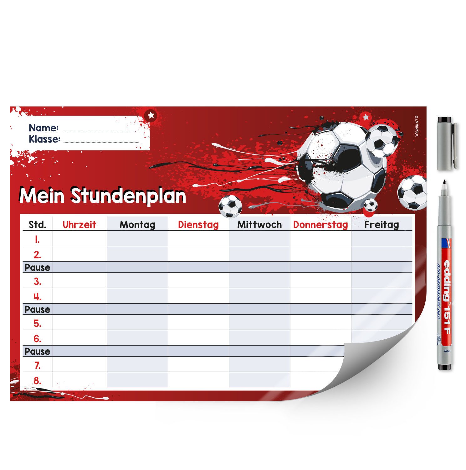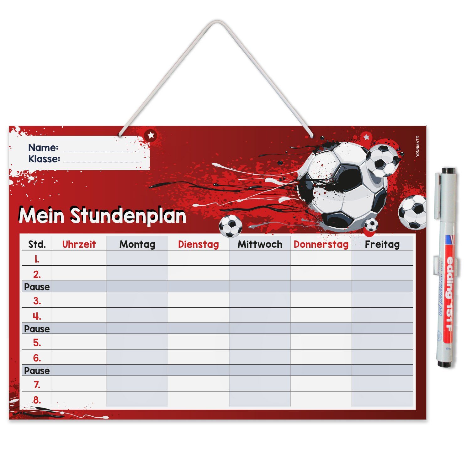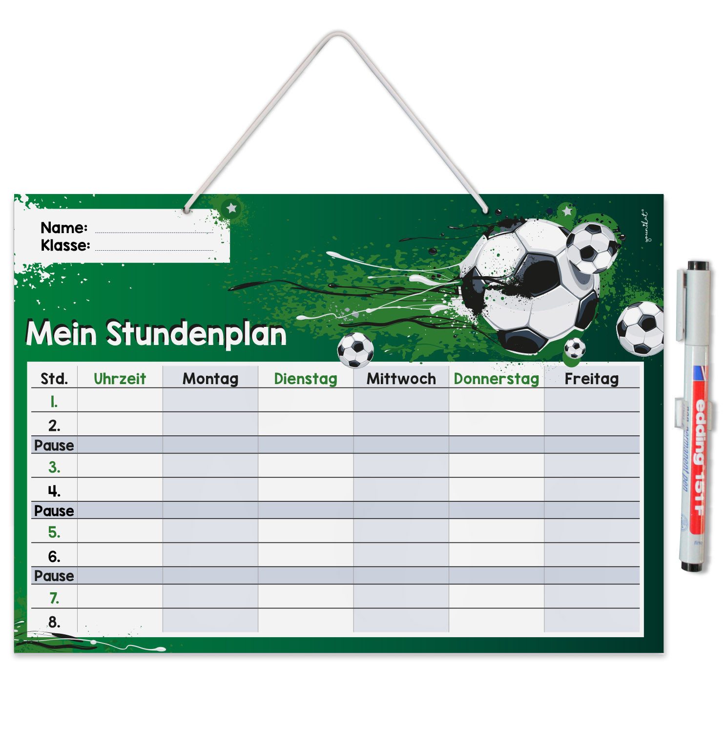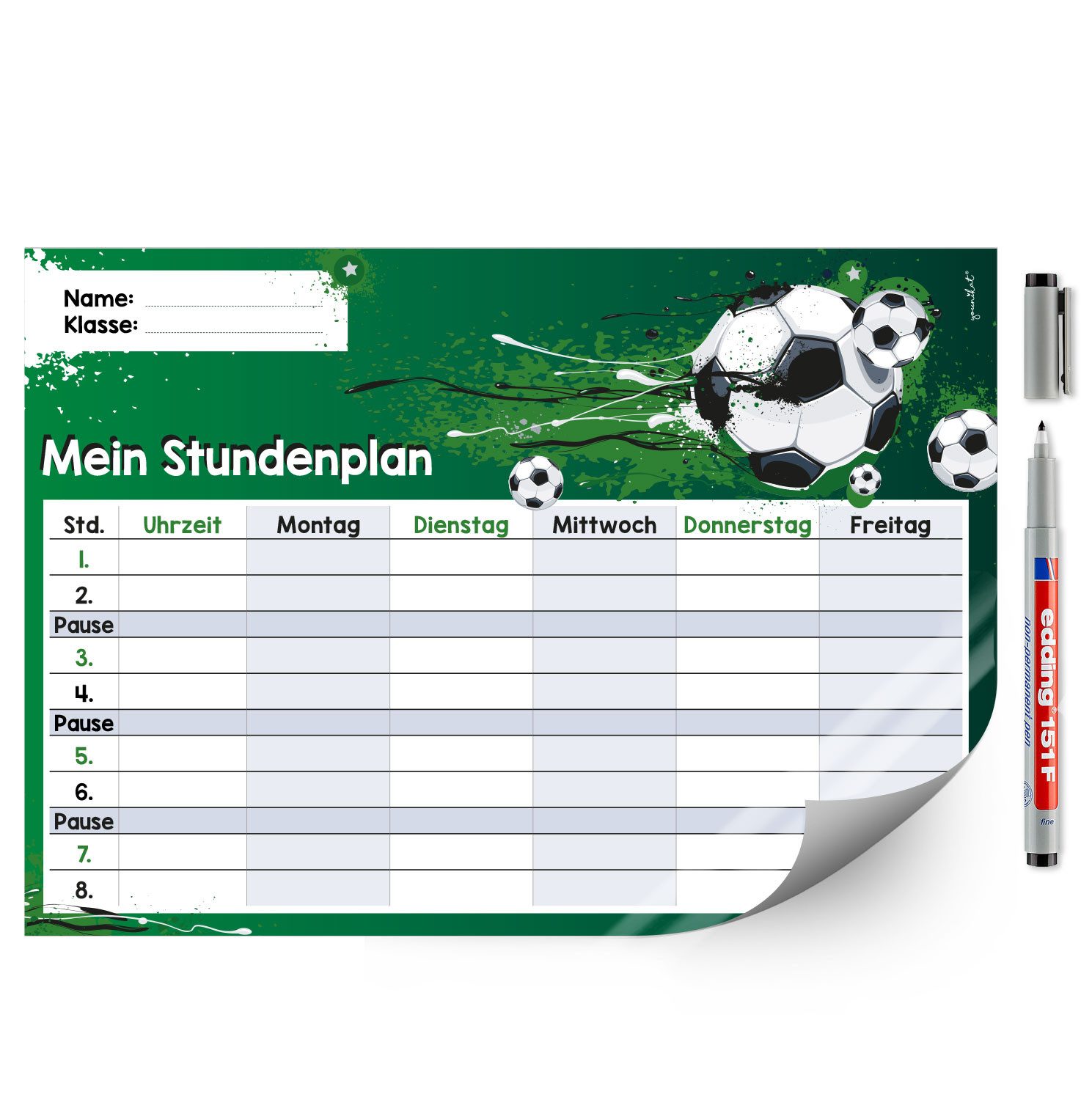 Ausstattung | 1 Stundenplan im Format DIN A4 (210 x 297 mm), inklusive Stift |