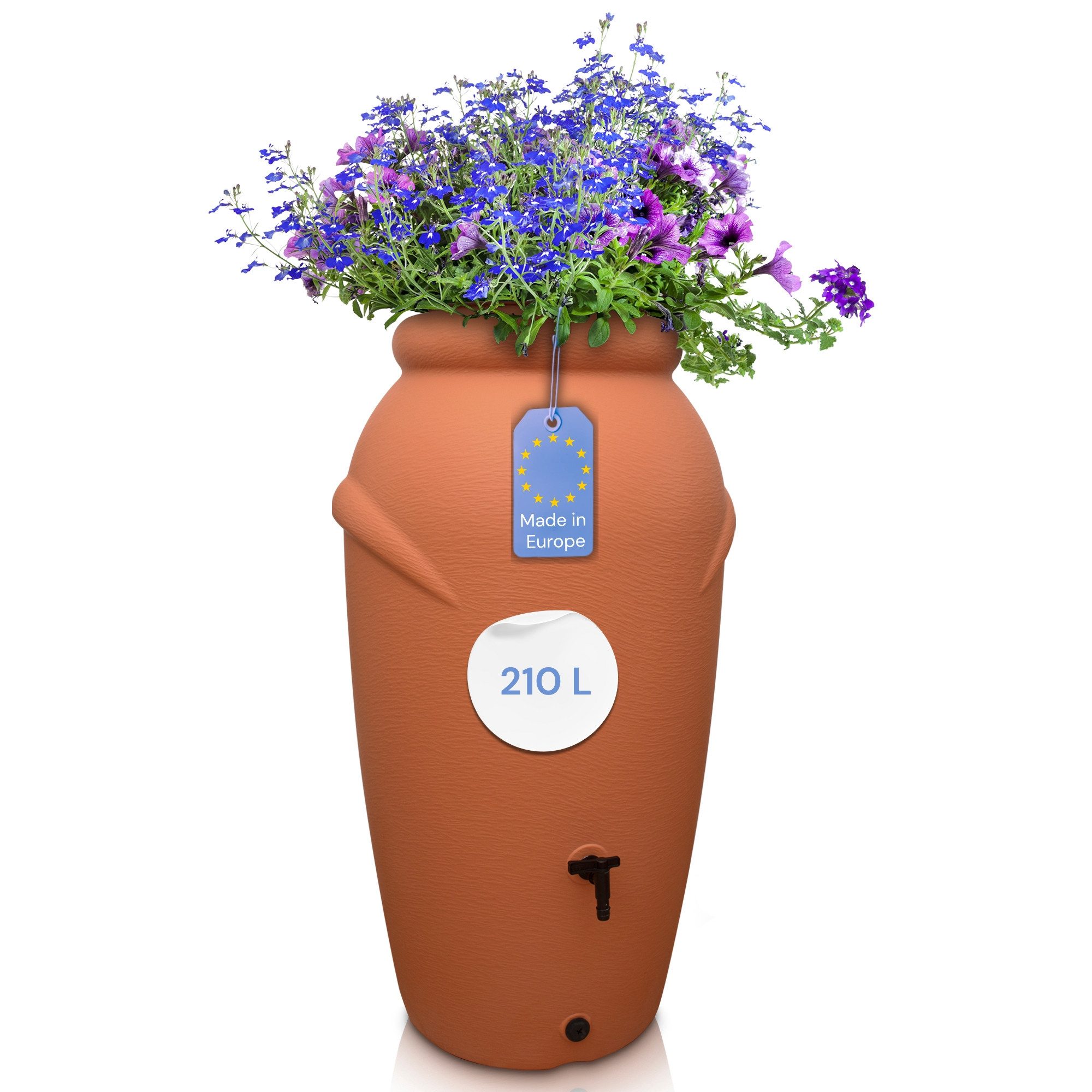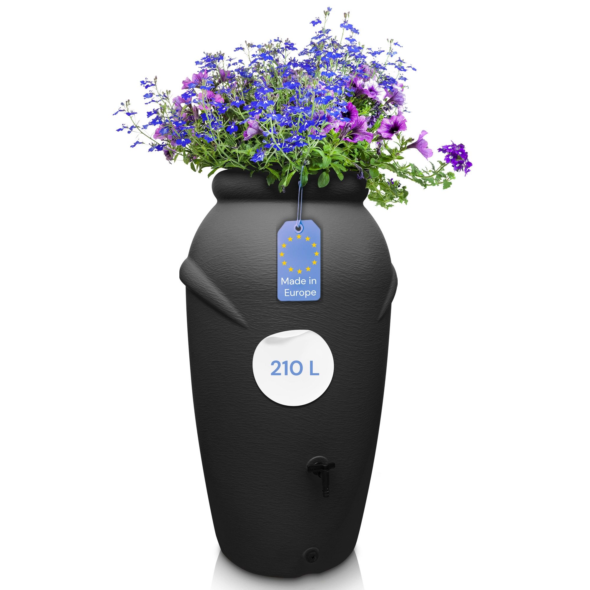 YourCasa Regentonne 210 Liter [Amphore Design] Regenfass Frostsicher aus Kunststoff - Regenwassertonne mit Wasserhahn