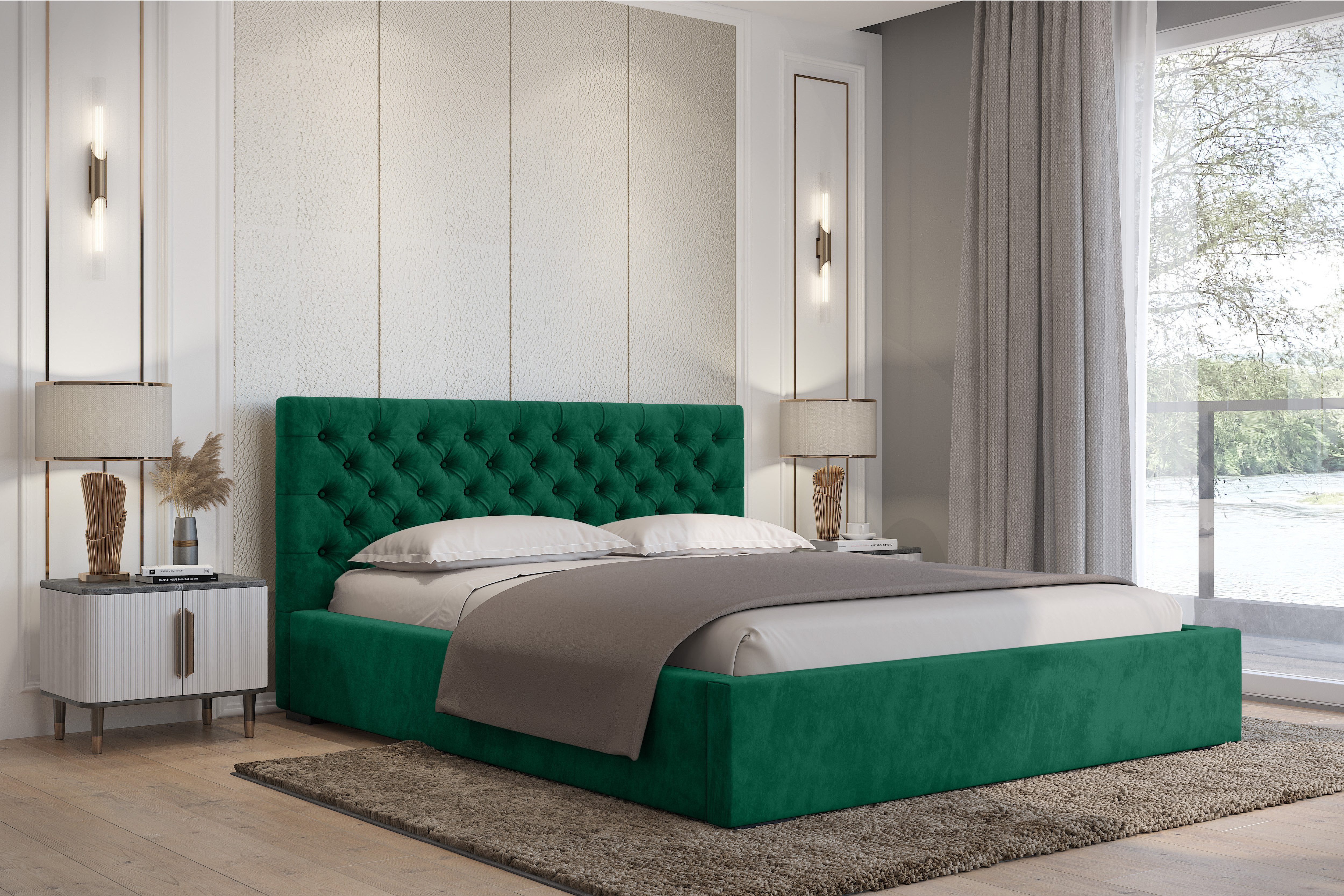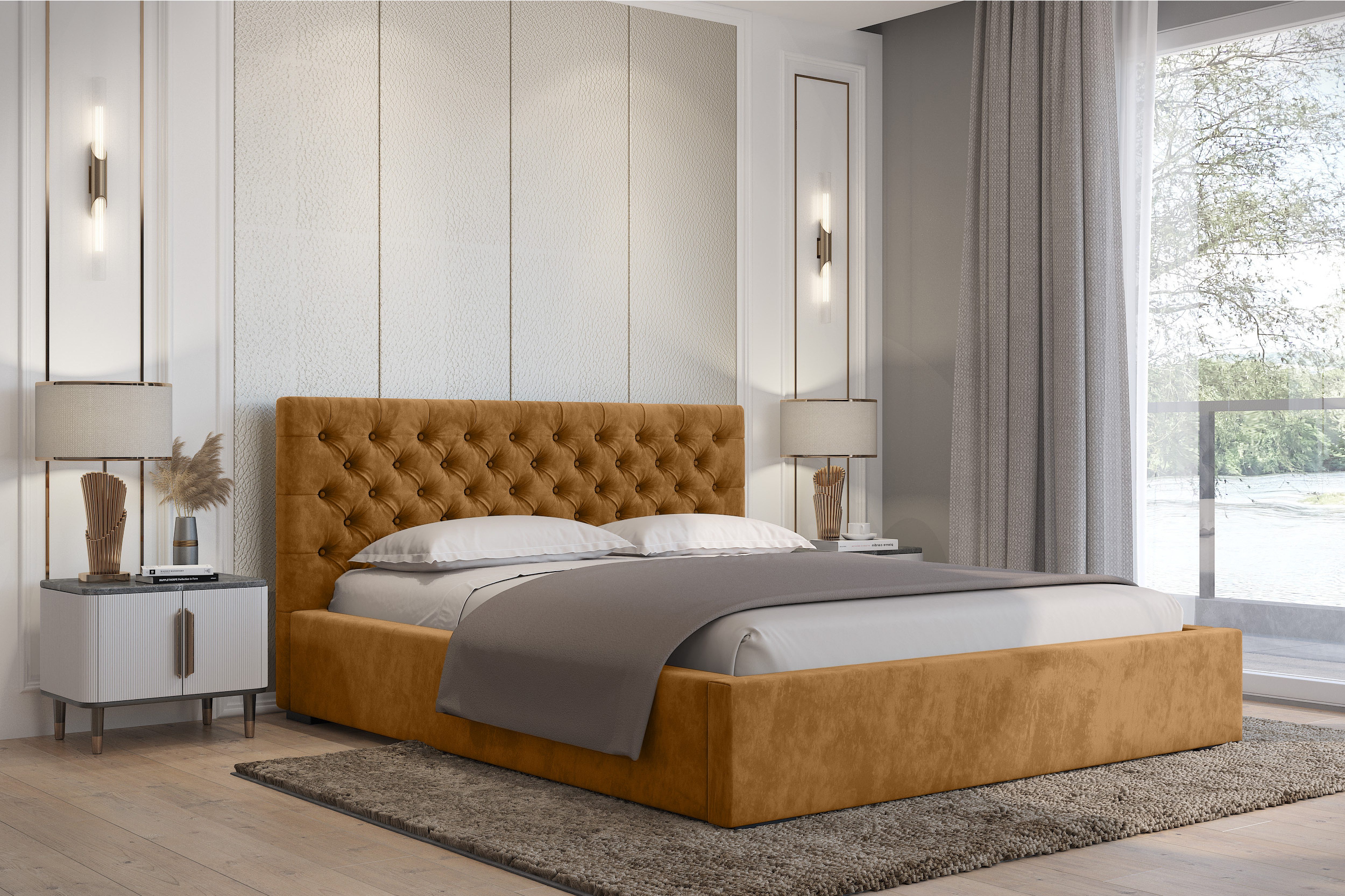 Das Chester I Bett vereint klassischen Stil mit moderner Funktionalität. Das charakteristische, gestepptes Kopfteil im Chesterfield-Stil verleiht Ihrem Schlafzimmer Eleganz und Luxus und wird zum zentralen Blickfang des Raumes. Die robuste Konstruktion und die bequeme Rückenlehne bieten Komfort sowohl beim Schlafen als auch beim Entspannen.