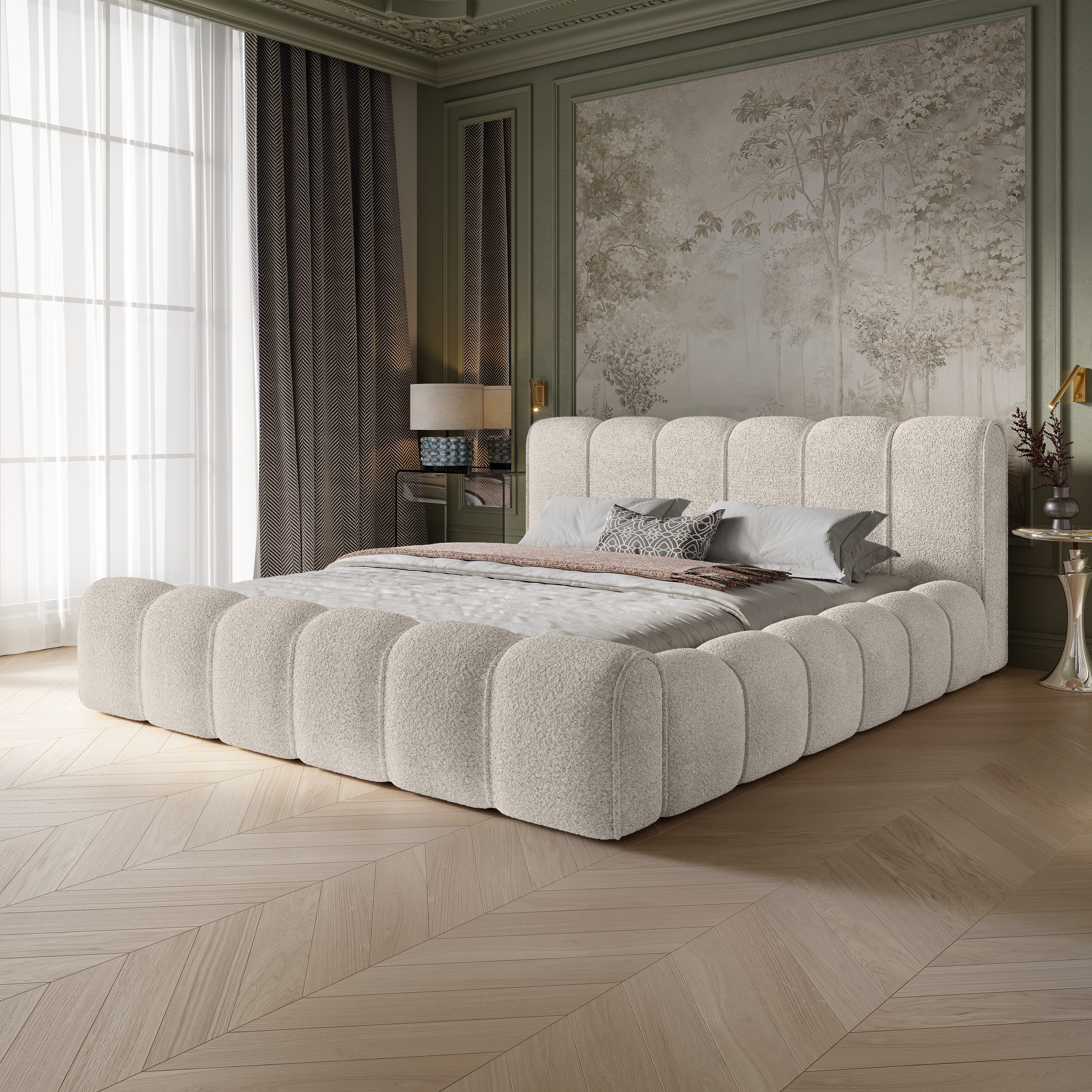 Polsterbett „Adell“ Bouclé – gemütlich, modern und besonders pflegeleicht. Der weiche QUELLE-Bouclé-Bezug („Teddy/Sheep-like“) verleiht Struktur und Wärme, die hohe Abriebfestigkeit bis 90.000 Martindale sorgt für langlebige Schönheit. Erhältlich in Gesamtbreiten ca. 180/200/220 cm – ideal für moderne, skandinavische oder Japandi-Interieurs.