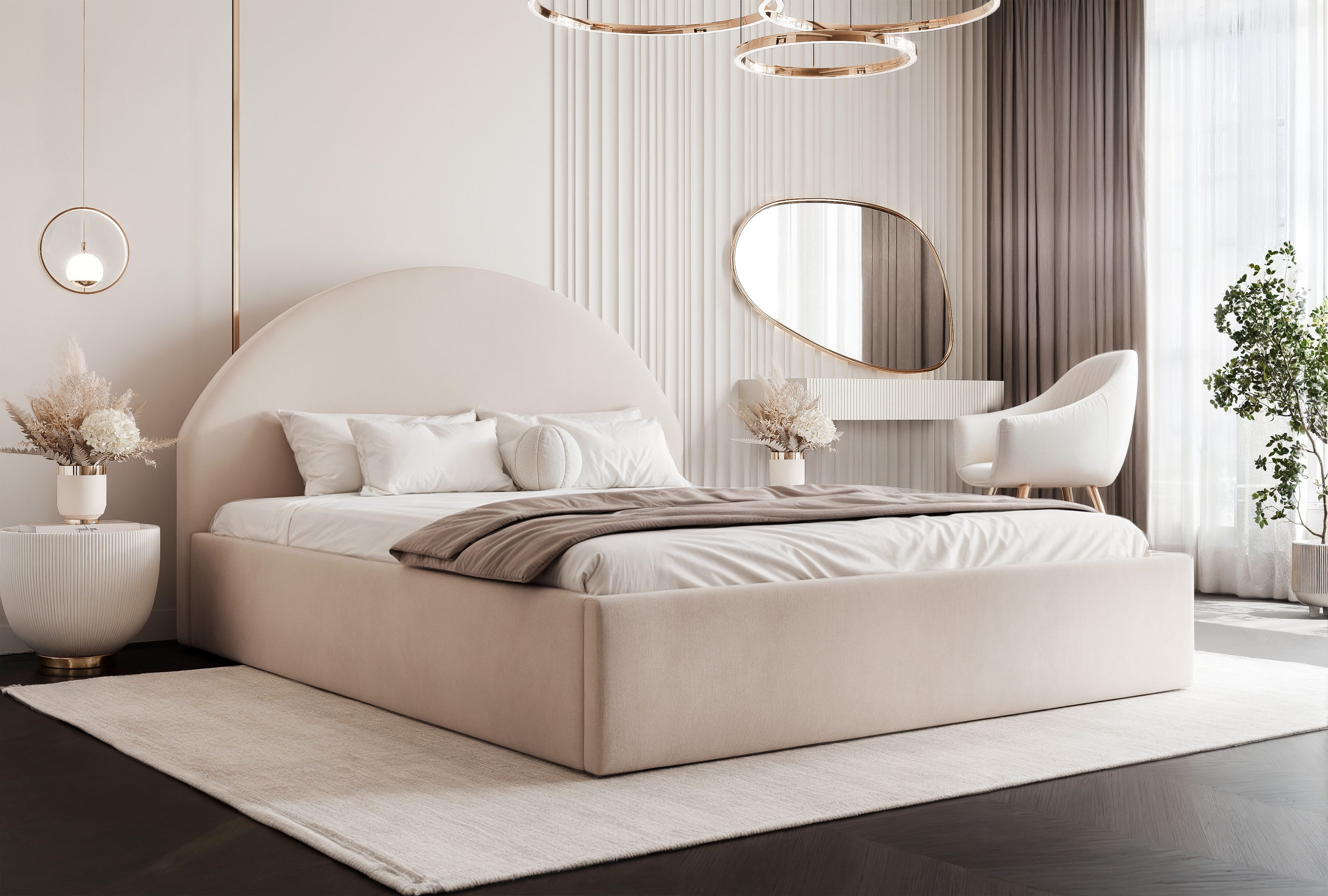 Paros VIII verbindet klare, weiche Linien mit hoher Alltagstauglichkeit. Das halbkreisförmige, gepolsterte Kopfteil und sanft gerundete Frontkanten sorgen für eine ruhige, hochwertige Anmutung. Der Stauraum unter der gesamten Liegefläche schafft Platz und Ordnung – ohne Abstriche bei der Optik.