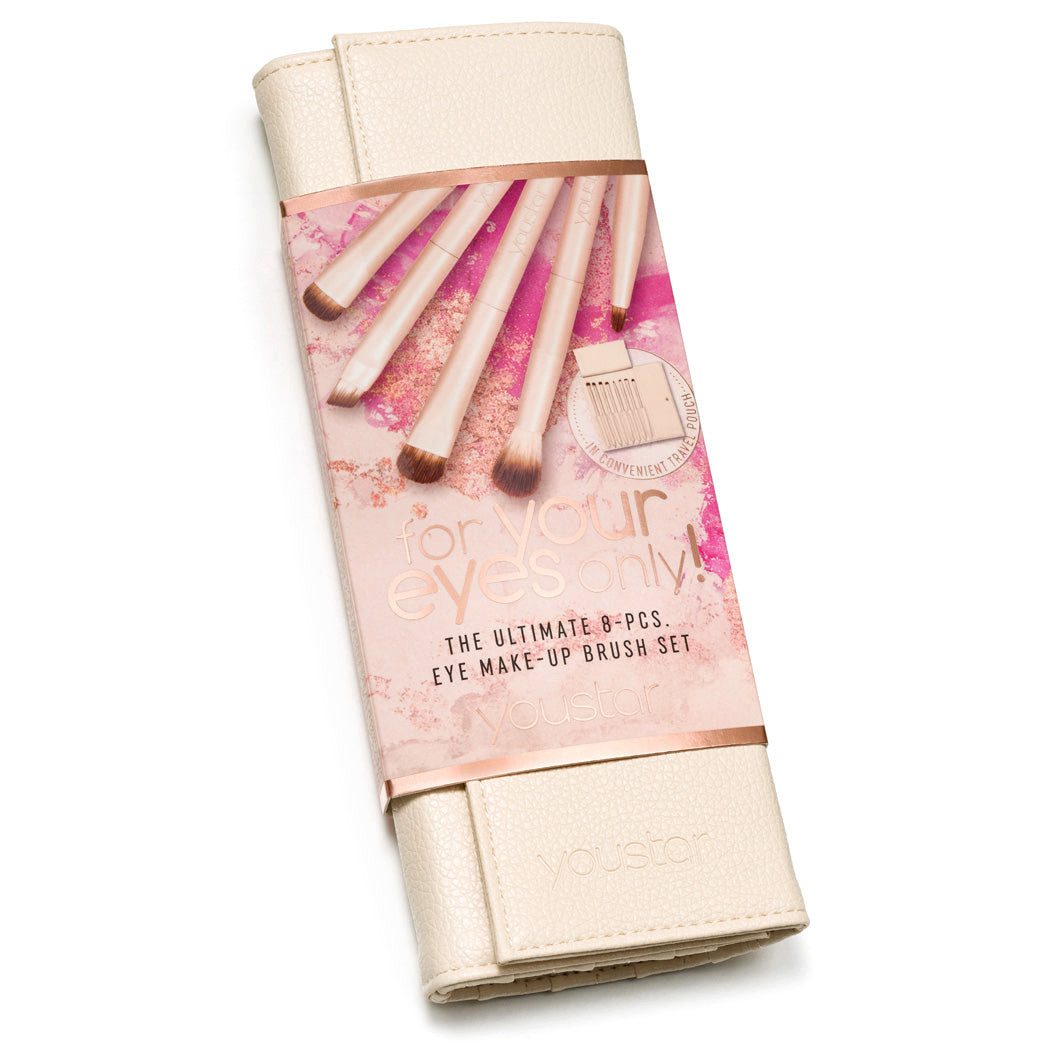 Erlebe präzises Augen-Make-up mit dem youstar FOR YOUR EYES ONLY! Eye Makeup Brush Set. Dieses luxuriöse Pinsel-Set enthält acht hochwertige, vegane Make-up-Pinsel, die speziell für das Augen-Make-up entwickelt wurden. Mit ultrafeinen, weichen Borsten sorgen die Pinsel für ein makelloses Auftragen und Verblenden von Lidschatten, Eyeliner und Concealer und ermöglichen so einen professionellen Look – perfekt für sowohl dezente als auch intensive Augen-Make-up-Looks.
