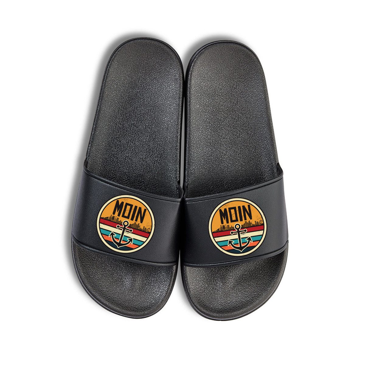 Begrüßen Sie den Tag auf maritime Weise mit unseren Unisex "Moin" Badelatschen. Inspiriert durch das nautische Flair Hamburgs und den Geist des Nordens, sind diese Schuhe perfekt für alle, die das Meer lieben oder sich mit der Hafenkultur verbunden fühlen. Der Aufdruck "Moin" kombiniert eine typisch norddeutsche Begrüßung mit einem stilisierten Anker und der Hafenstadt Hamburgs, was diese Badelatschen zu einem echten Hingucker macht. Die ergonomische Passform und die rutschfeste Sohle sorgen für Komfort und Sicherheit, ob am Strand, im Schwimmbad oder während eines entspannten Tages zu Hause. Verfügbar in den Größen 36 bis 47, sind diese Badelatschen ein ideales Geschenk für maritime Enthusiasten zu Anlässen wie Vatertag, Muttertag oder als charmantes Mitbringsel.