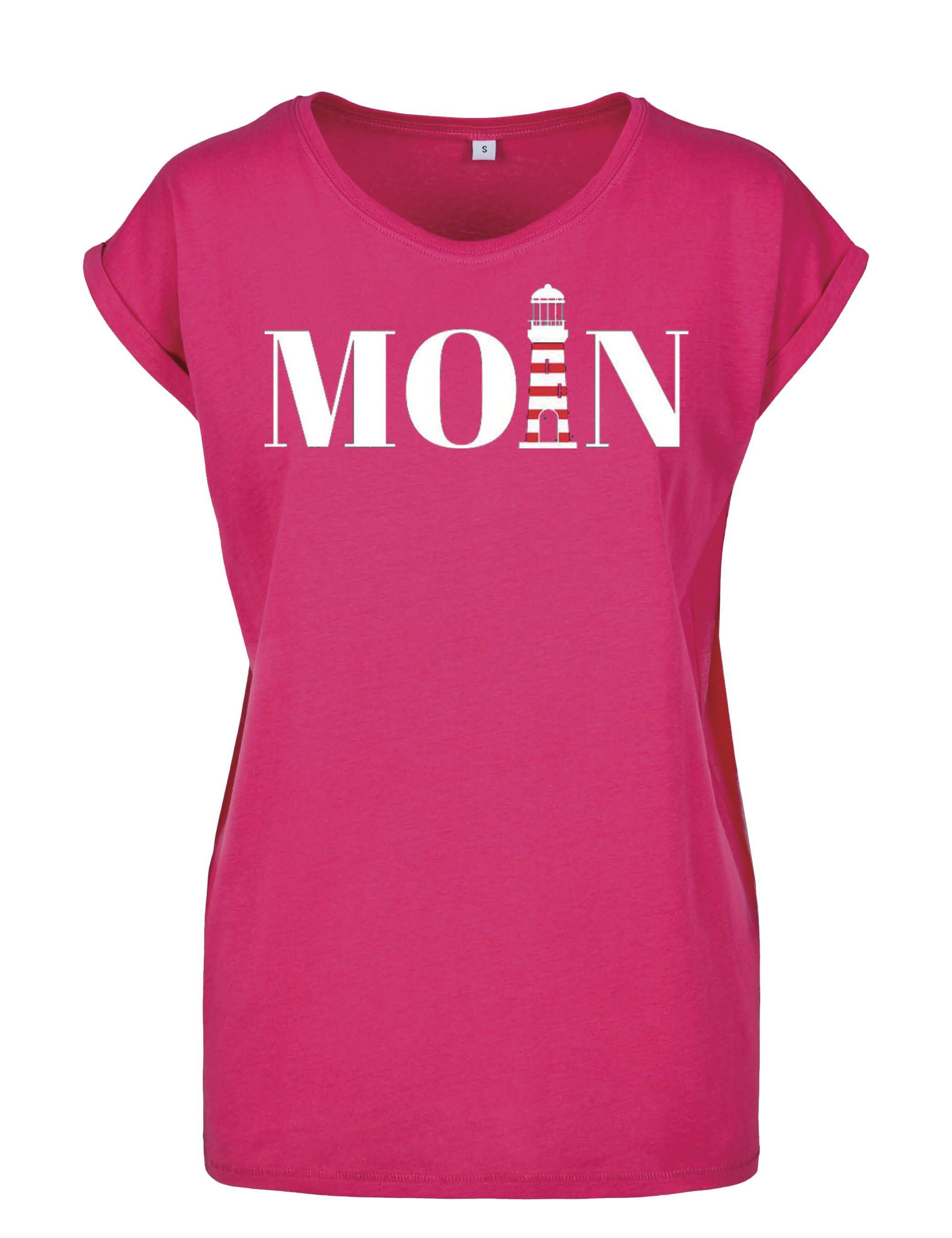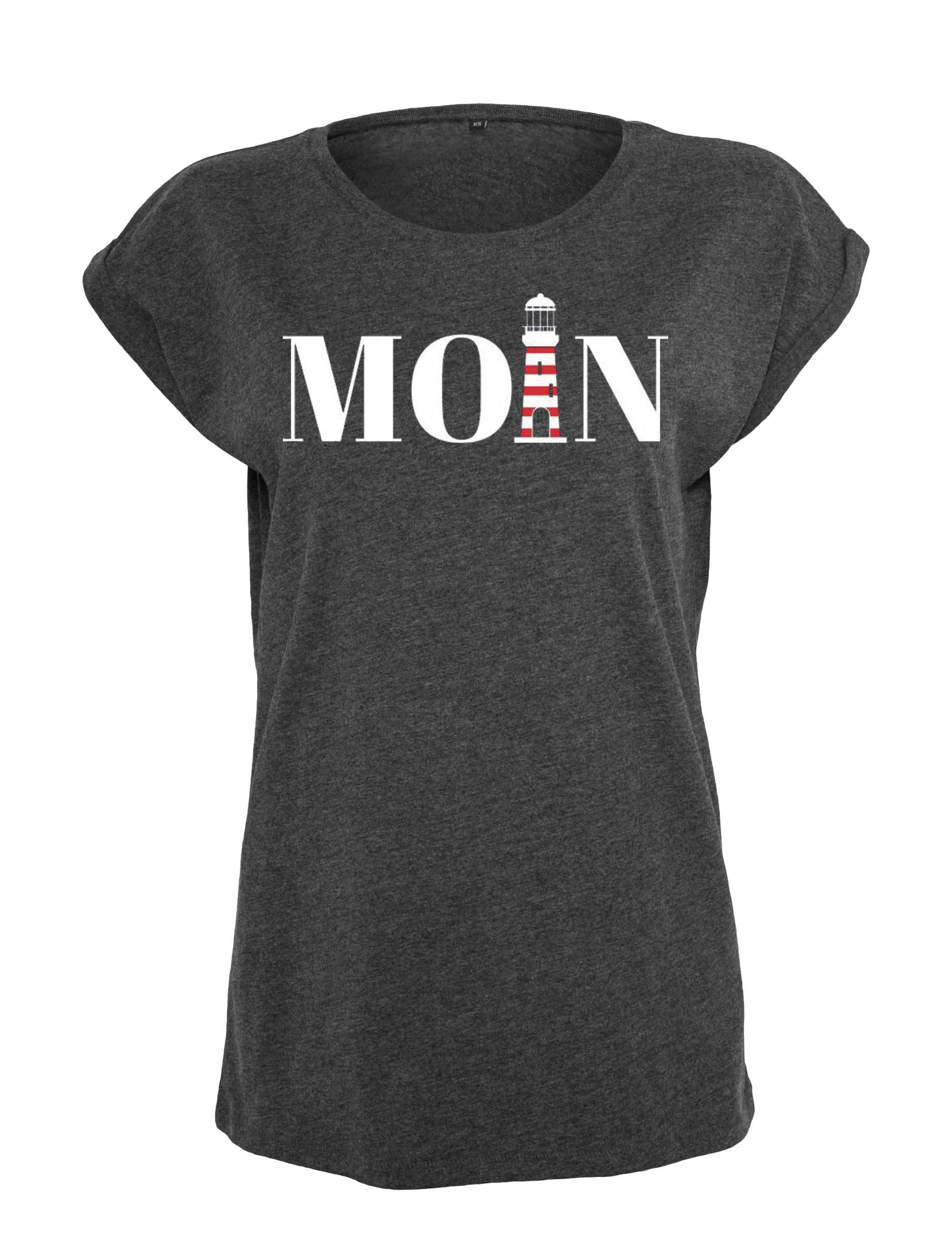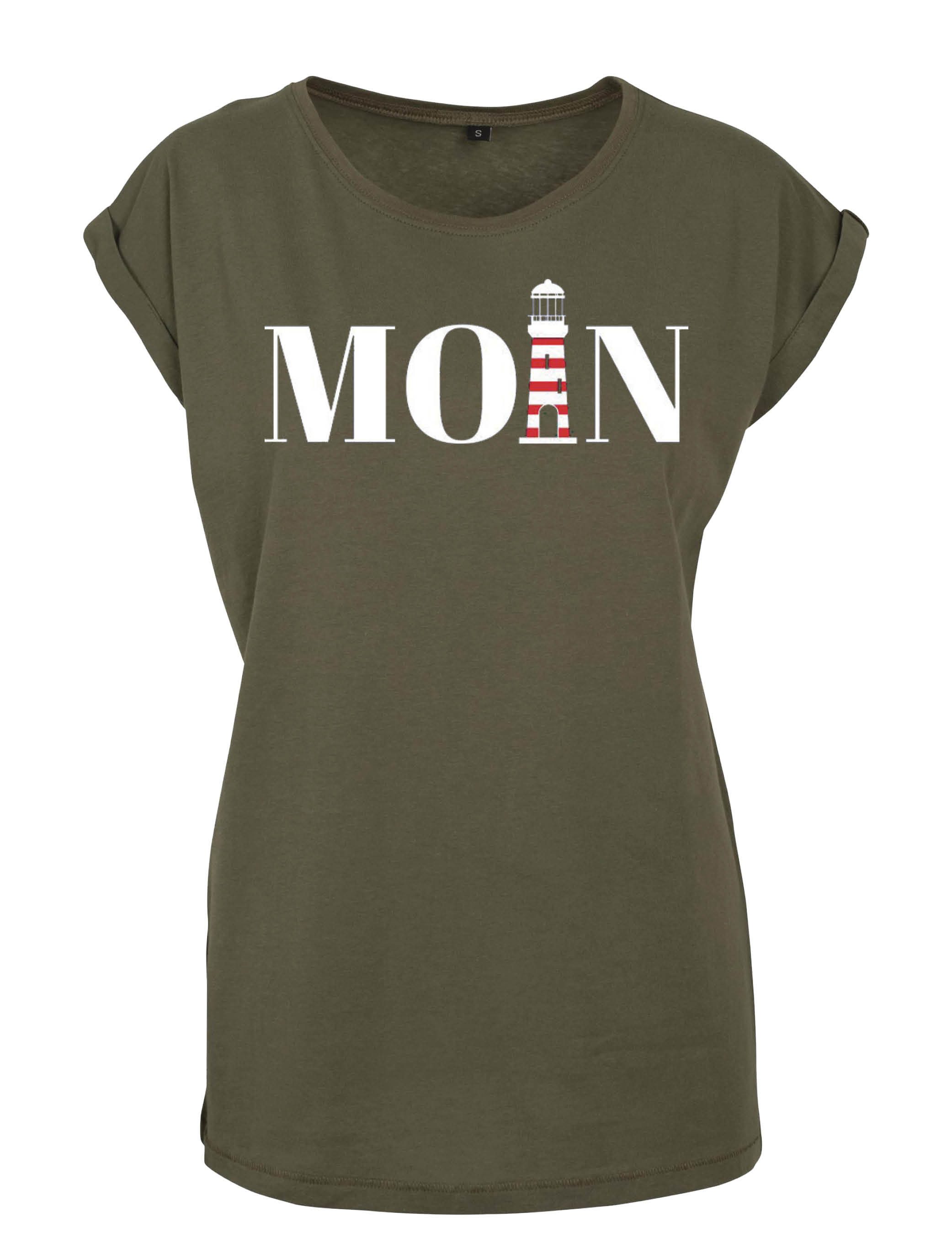 Maritimes Design: Schlichter „Moin“-Schriftzug mit stilvollem Leuchtturm – für Frauen, die norddeutschen Flair und Küstenromantik lieben.