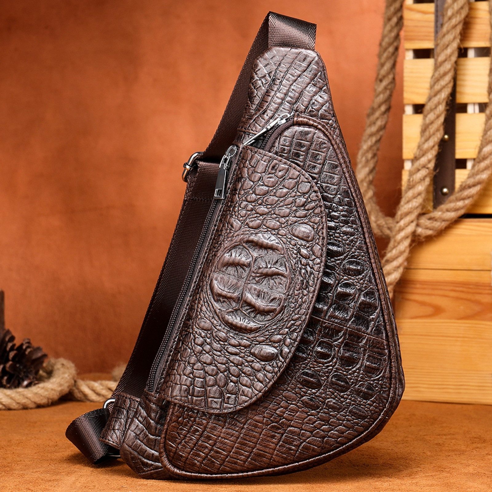 Diese Lederumhängetasche für Herren ist mit einem Prägemuster gefertigt und hat einen verstellbaren Riemen. Beinhaltet ein Hauptfach sowie vordere und hintere Reißverschlusstaschen. Perfekt für den täglichen Gebrauch Größe: 13,77 x 7,48 x 1,18 Zoll (35 x 19 x 3 cm).