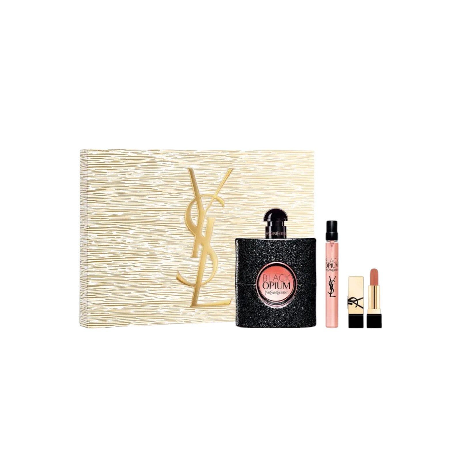 YSL Black Opium Geschenkset 2025 – mit Black Opium Eau de Parfum (90 ml), 10 ml-Reisegröße und Mini Rouge Pur Couture Lippenstift in Nude Muse