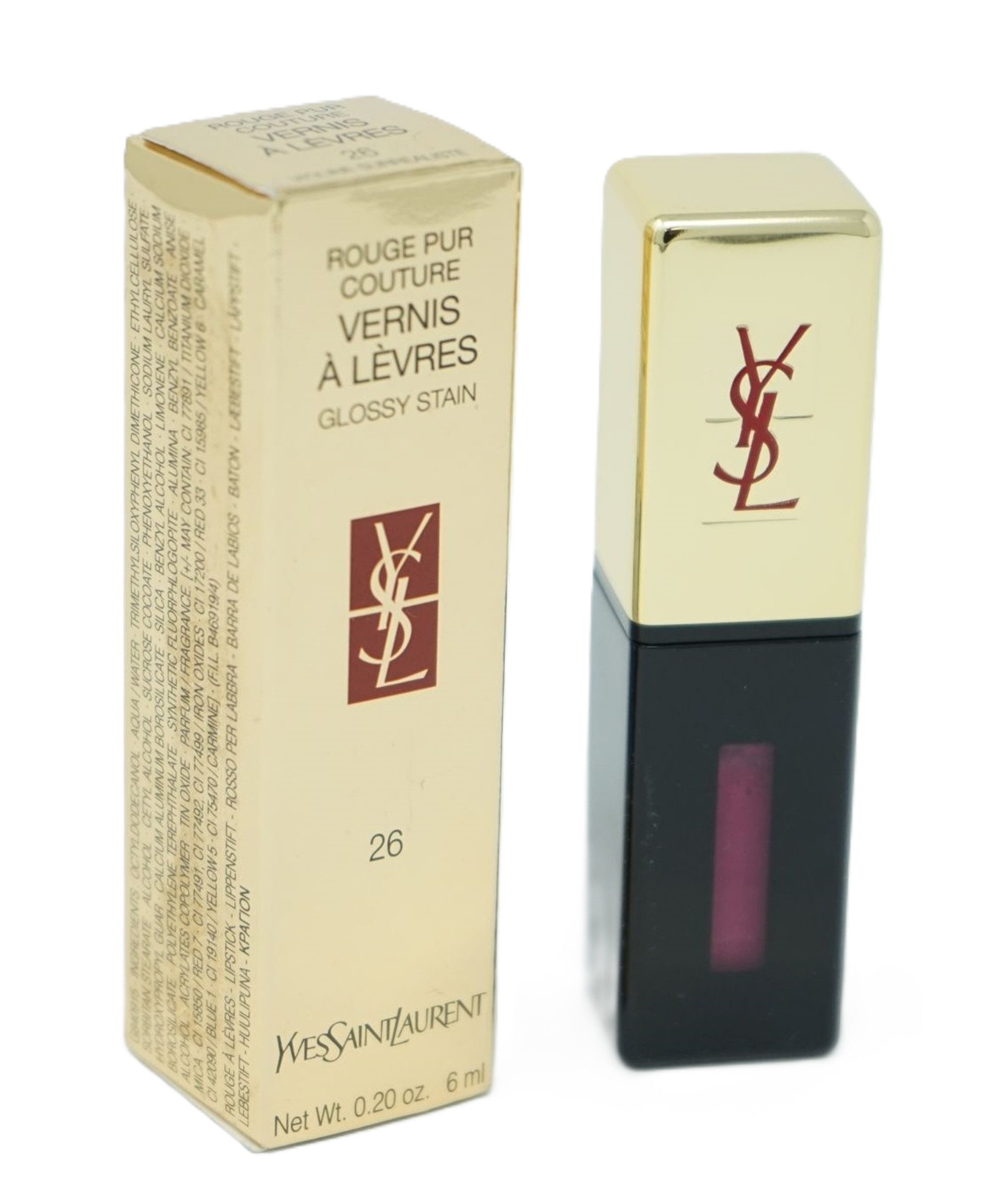 Der Yves Saint Laurent Rouge Pur Couture Vernis À Lèvres im Farbton 26 Violine Surrealiste vereint die Farbintensität eines Lippenstifts mit dem Hochglanz eines Lipglosses und der langanhaltenden Wirkung eines Stains Die innovative, wasserbasierte Formel sorgt für ein federleichtes Tragegefühl, spendet Feuchtigkeit und bietet eine aufbaubare Deckkraft 26 Violine Surrealiste ist ein ausdrucksstarker Violettton mit elegantem Glanz, der den Lippen eine moderne und mystische Ausstrahlung verleiht