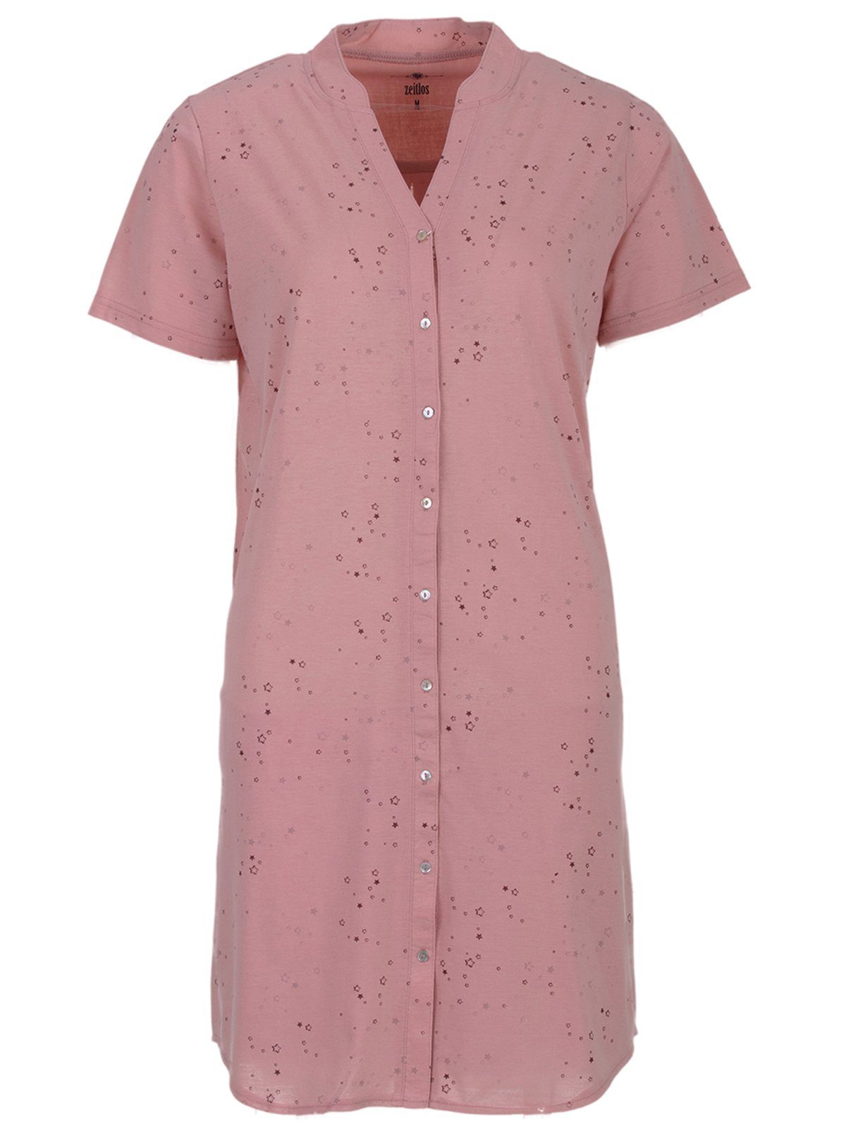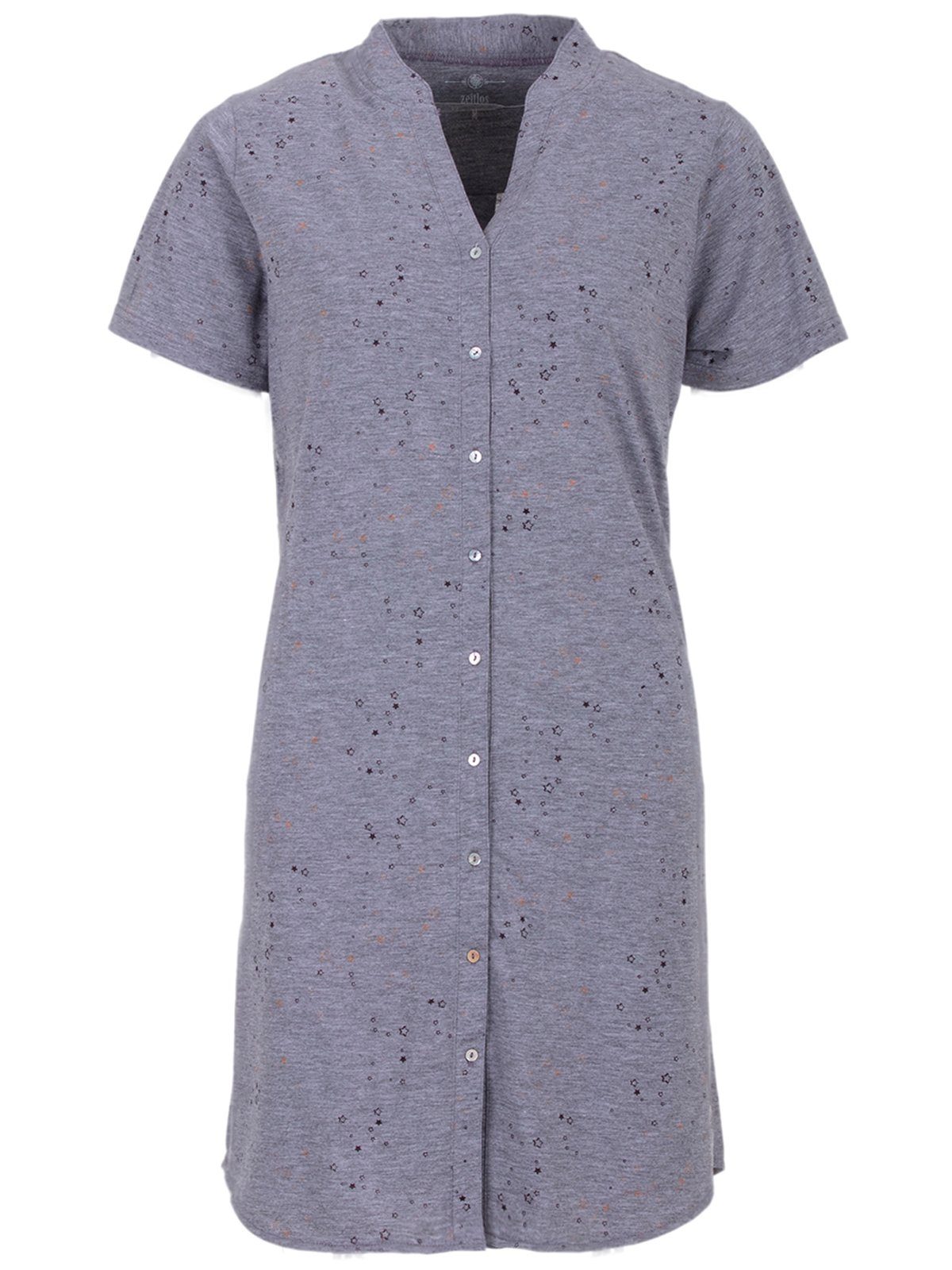 Ein Allover Druck mit kleine Sternen. Der komfortable Schnitt mit durchgehender Knopfleiste und kleinem Stehkragen verleihen dem Schlafshirt einen hochwertigen Look.