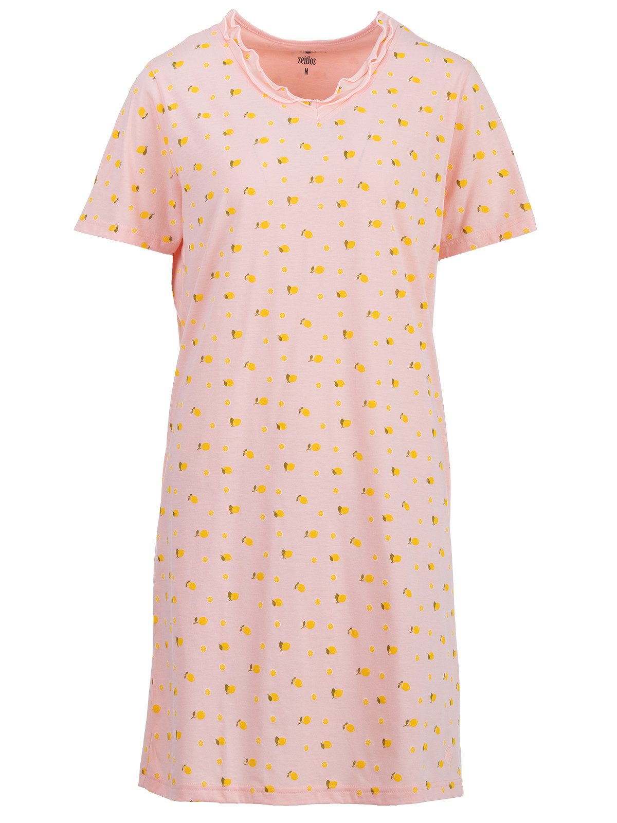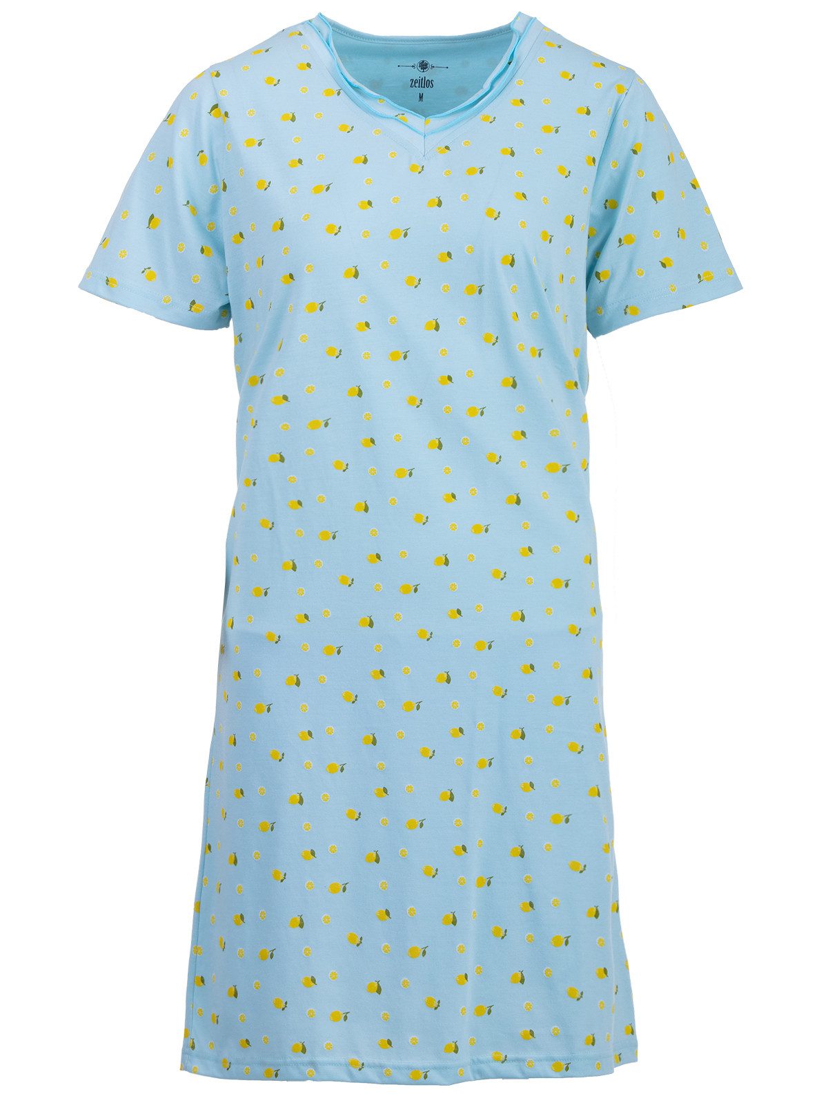 Das Highlight dieses Nachthemds ist das süße Allover-Muster aus Mini-Zitronen, das dem Nachthemd eine frische und fröhliche Note verleiht. Frühlingshafte Farben machen gute Laune. Erhältlich in apricot, hellblau und flieder.