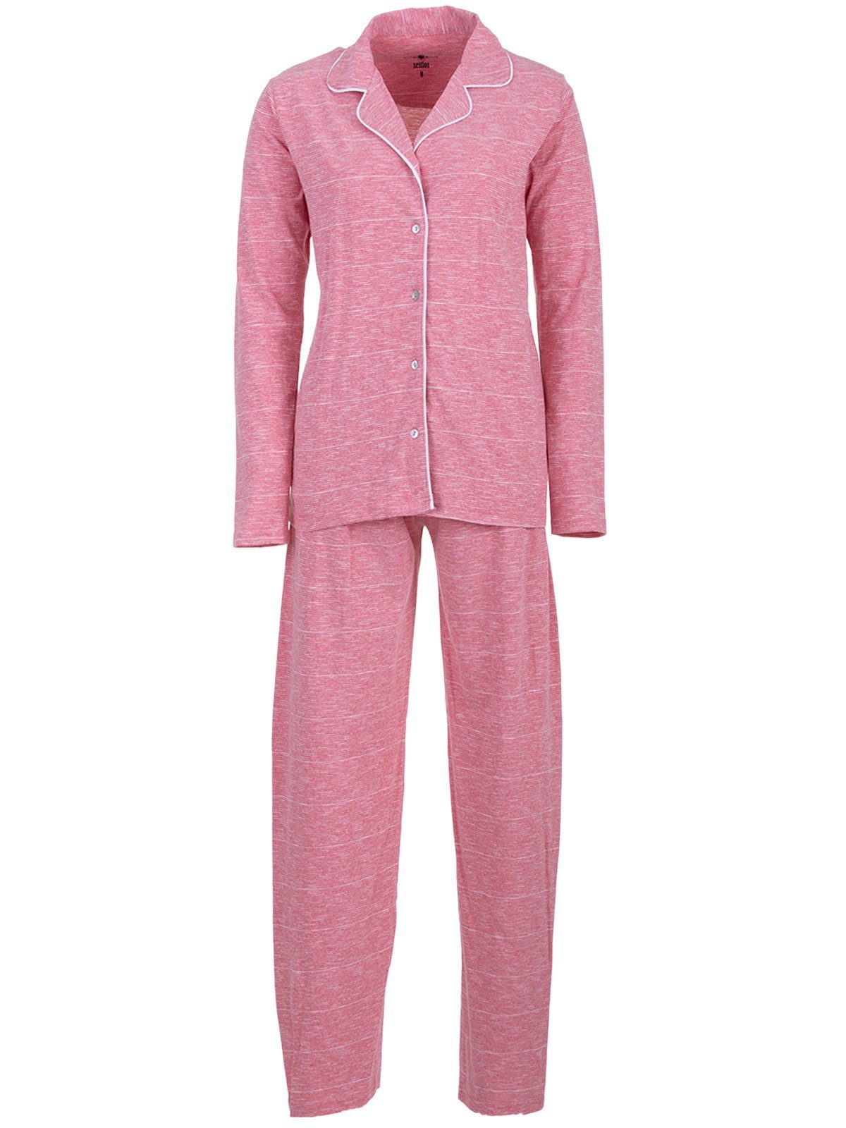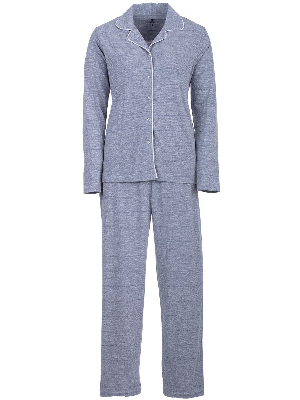 Melange Druck mit einem zarten Streifen. Der moderne Schnitt gepaart mit einer Paspelierung machen den Schlafanzug zum Lieblingsstück.