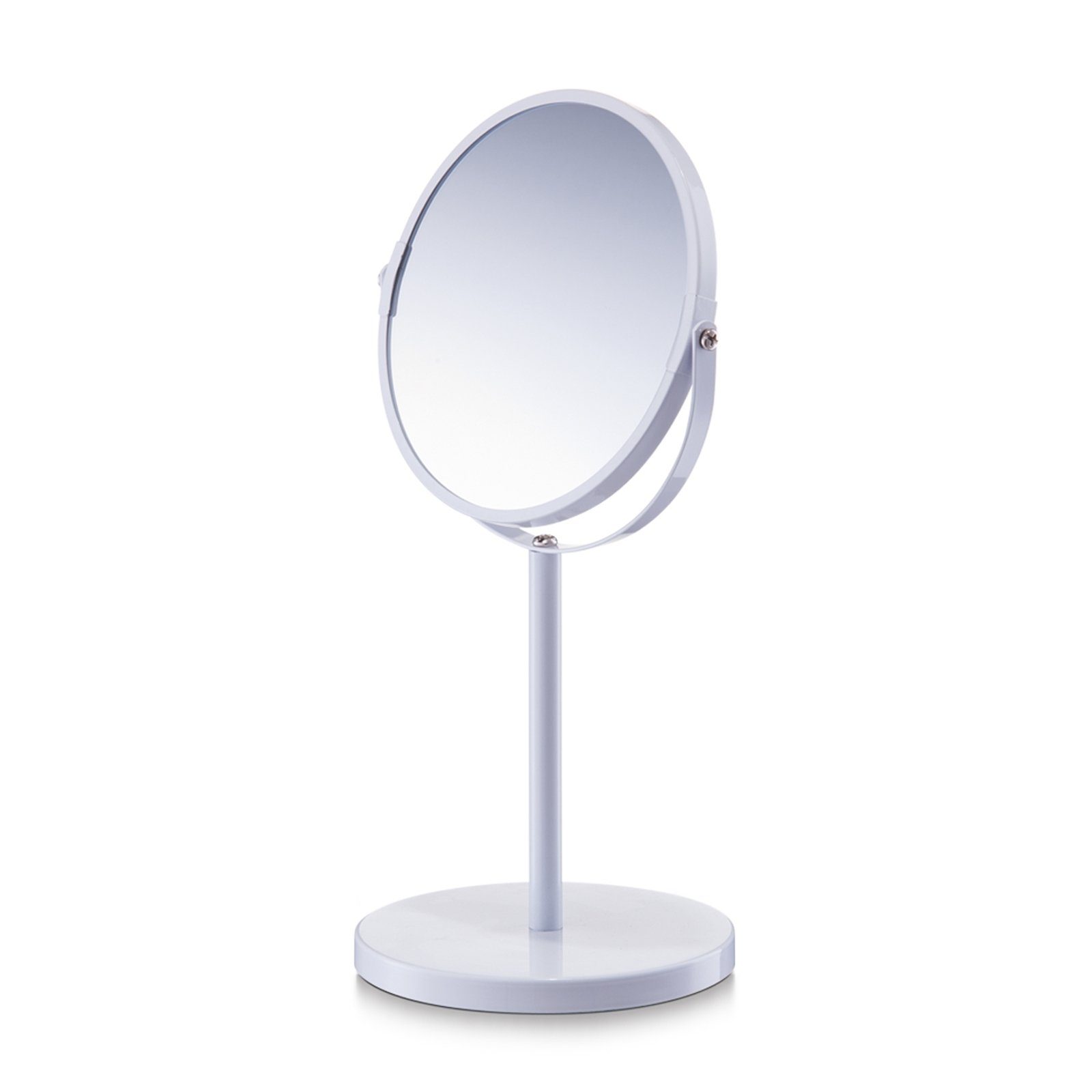 Dieser praktische Kosmetikspiegel ist unverzichtbar für Ihr Bad. Ausgestattet mit zwei Spiegelflächen – einem Normalspiegel und einem 3-fach Vergrößerungsspiegel – sind beim Schminken oder Rasieren auch kleinste Details im Gesicht erkennbar. Der Fuß gibt dem Spiegel einen sicheren Stand und Sie haben beide Hände frei für Ihr perfektes Styling. Maße: ca. Ø 15 x 35 cm, Material: Metall pulverbeschichtet