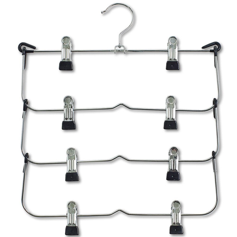 Ein praktischer Kleiderbügel zum Aufbewahren von Röcken. Ausgestattet mit 4 Paar Metallhaken und einer Aufhängung. Es wird auf jeden Fall helfen Ordnung im Kleiderschrank zu halten und die Einteilung Ihrer Lieblings-Kleidungsstücke zu erleichtern. Ermöglicht schnellen und bequemen Zugriff auf Inhalte. Es braucht nicht viel Platz. Gummienden beschädigen das Material nicht.